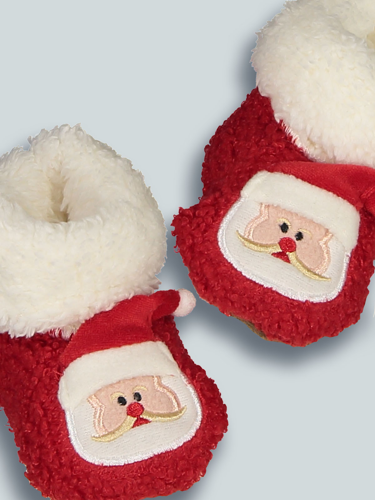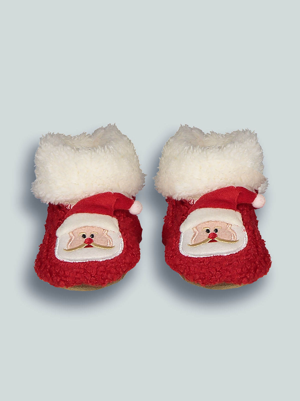 Babbuccia Babbo Natale in morbido peluches. Calda pantofola per neonato da utilizzare nel periodo natalizio. Non perderti questo originale accessorio.
