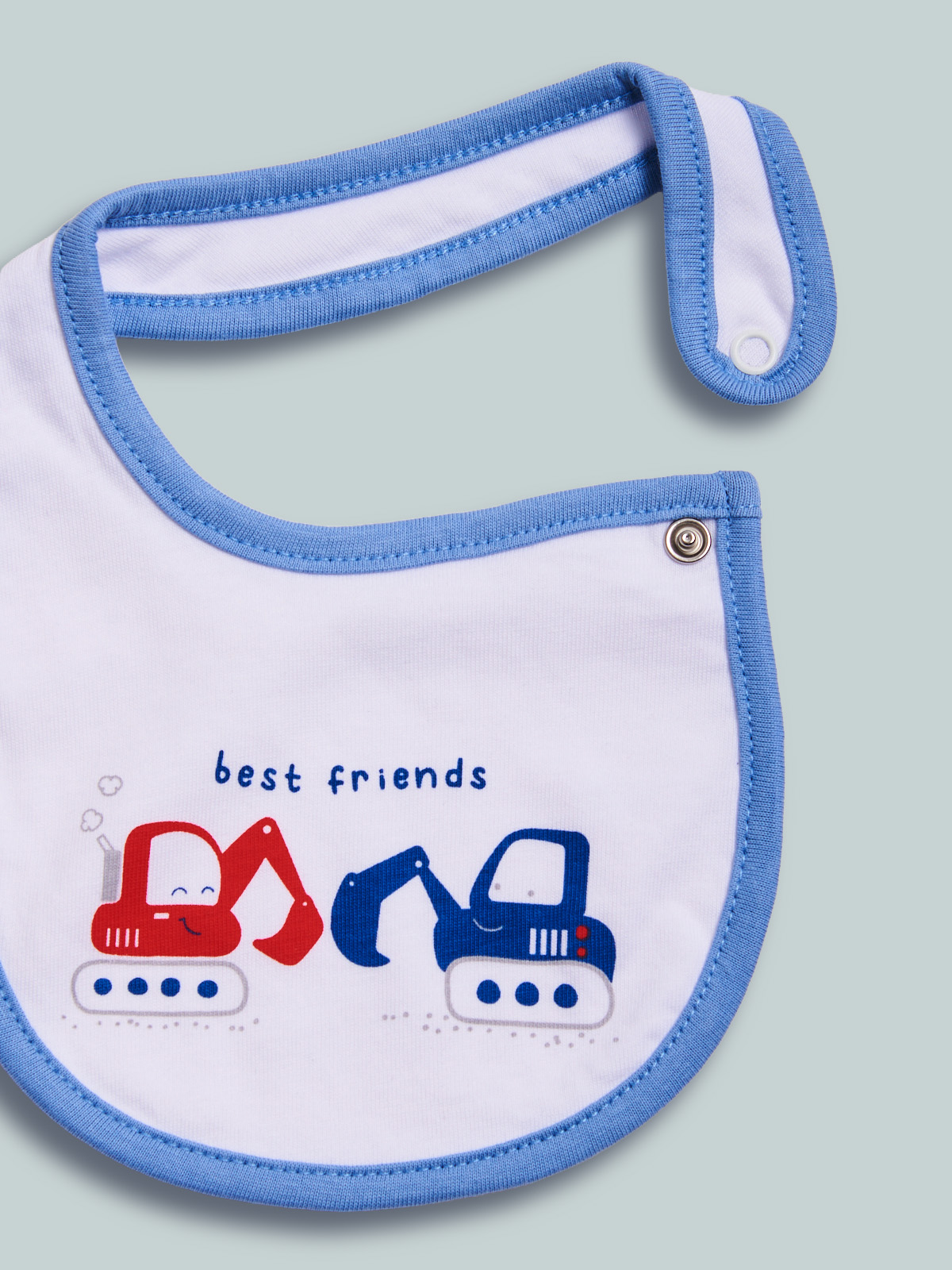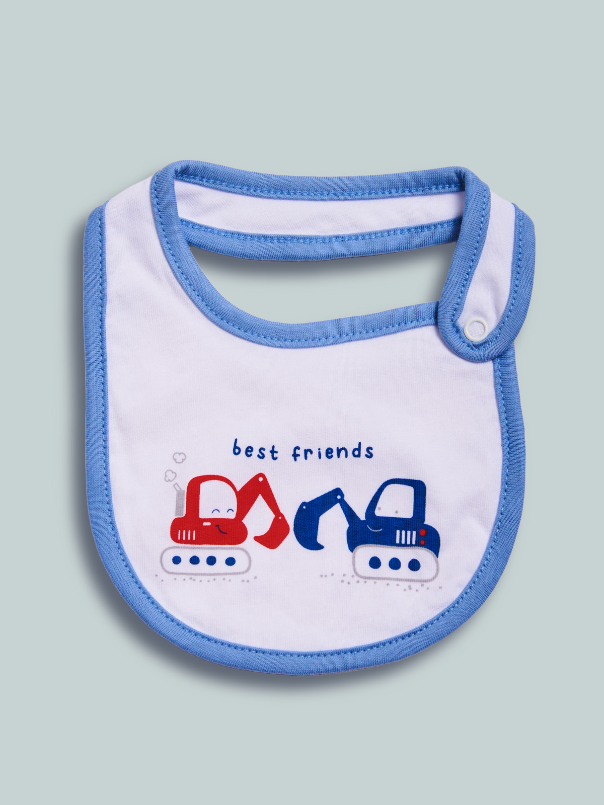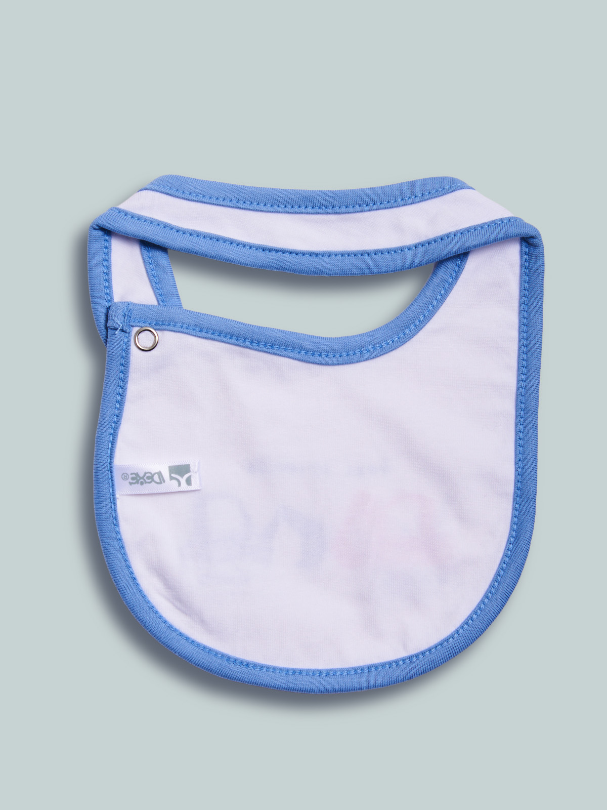 Morbido bavaglino doppiato in cotone. Apertura con bottone a pressione. Tenera stampa. Questo accessorio fa parte del corredino composto da tutti gli articoli indispensabili per la tua neonata.