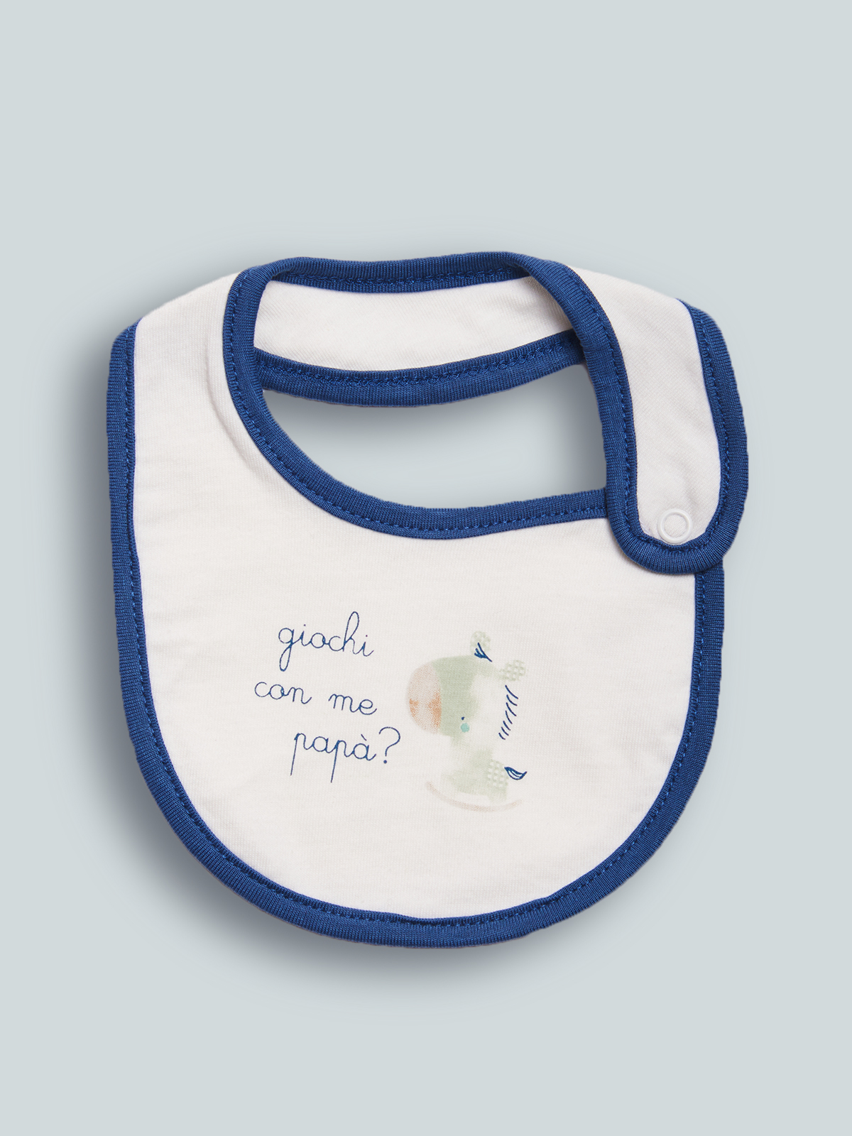 Bavetta in cotone decorato con stampa riproposta su altri articoli per completare il tuo corredino. Dotato di un pratico bottone a pressione sulla parte laterale per agevolarne l’indosso. Questo accessorio fa parte del corredino composto da tutti gli articoli indispensabili per il tuo neonato.