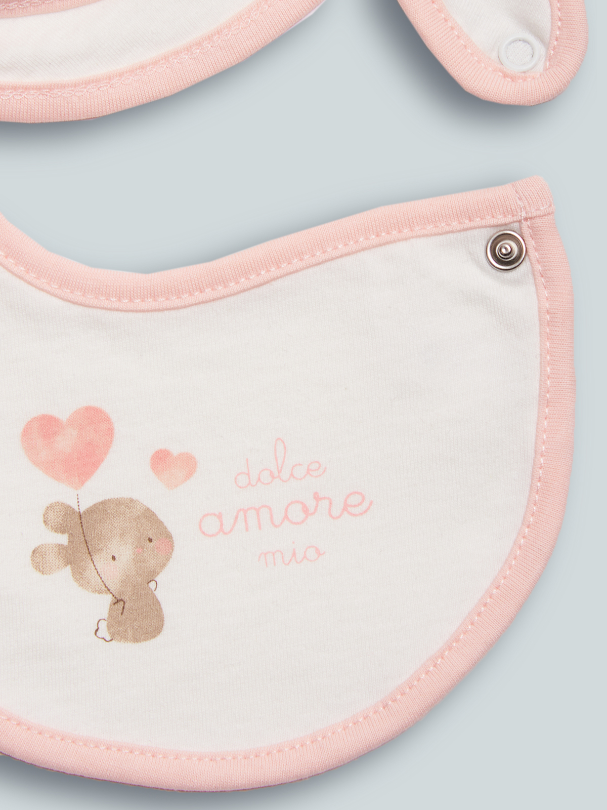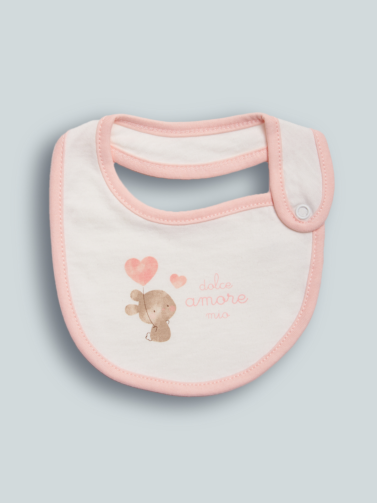 Bavetta in cotone decorato con stampa riproposta su altri articoli per completare il tuo corredino. Dotato di un pratico bottone a pressione sulla parte laterale per agevolarne l’indosso. Questo accessorio fa parte del corredino composto da tutti gli articoli indispensabili per il tuo neonato.
