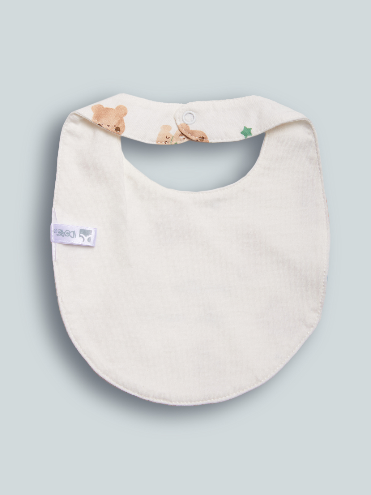 Bavetta in cotone decorato con stampa riproposta su altri articoli per completare il tuo corredino. Dotato di un pratico bottone a pressione sulla parte laterale per agevolarne l’indosso. Questo accessorio fa parte del corredino composto da tutti gli articoli indispensabili per il tuo neonato.