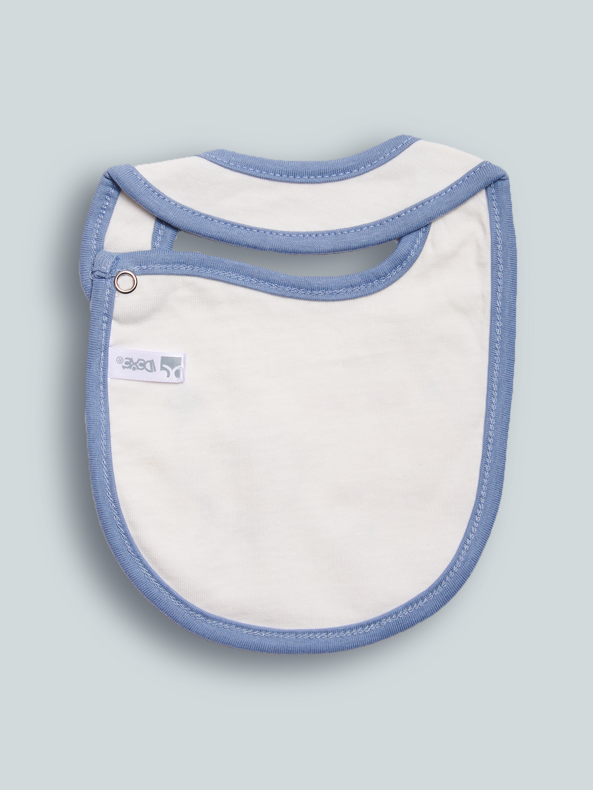 Morbido bavaglino doppiato in cotone e bordo contrasto. Apertura con bottone a pressione. Tenera stampa. Questo accessorio fa parte del corredino composto da tutti gli articoli indispensabili per il tuo neonato.
