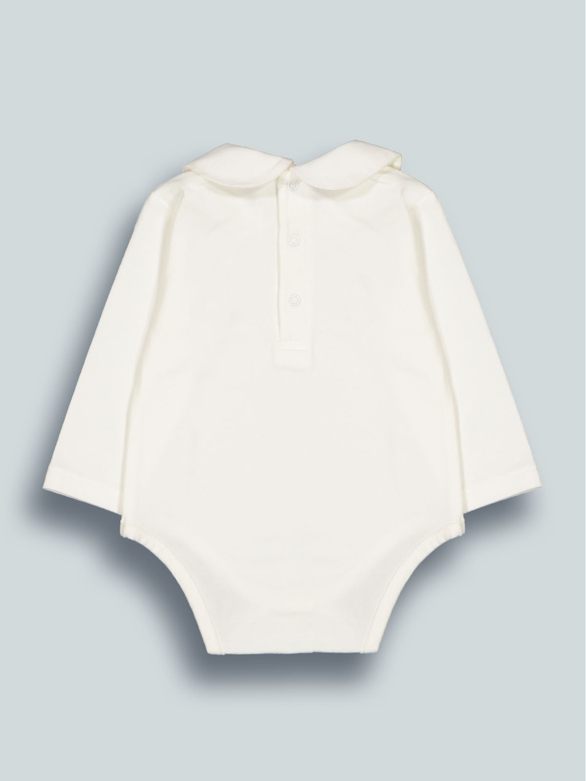 Body caldo cotone elasticizzato, collo rotondo, apertura sul dietro ed entrogamba con bottoncini a pressione per facilitarne l’indosso. Capo essenziale per ogni tipo di look.