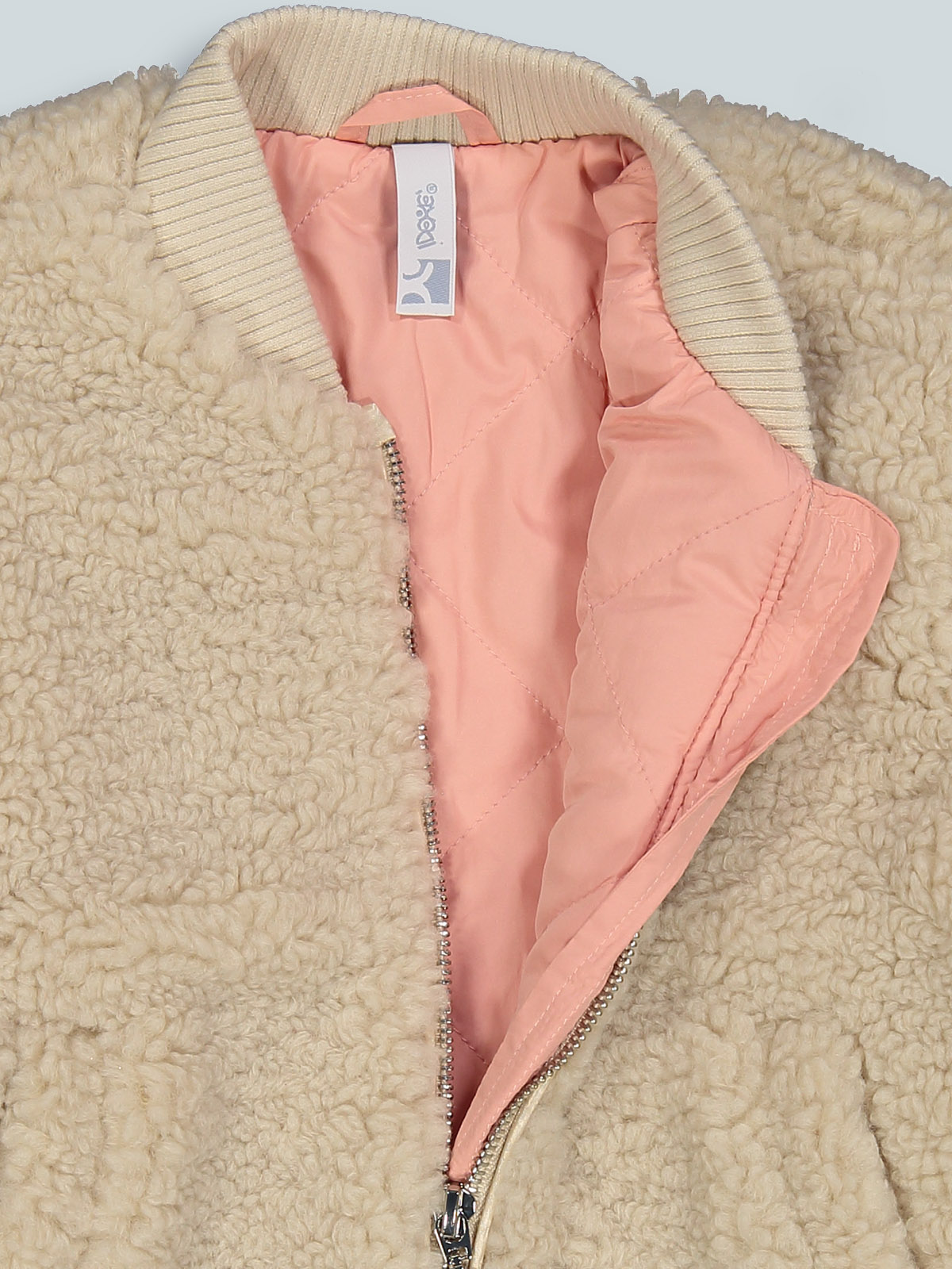 Bomberino in morbido pelouches con collo e polsi e fondo in costina. Fodera in nylon con imbottitura leggera. Un capo molto fashion e di tendenza.