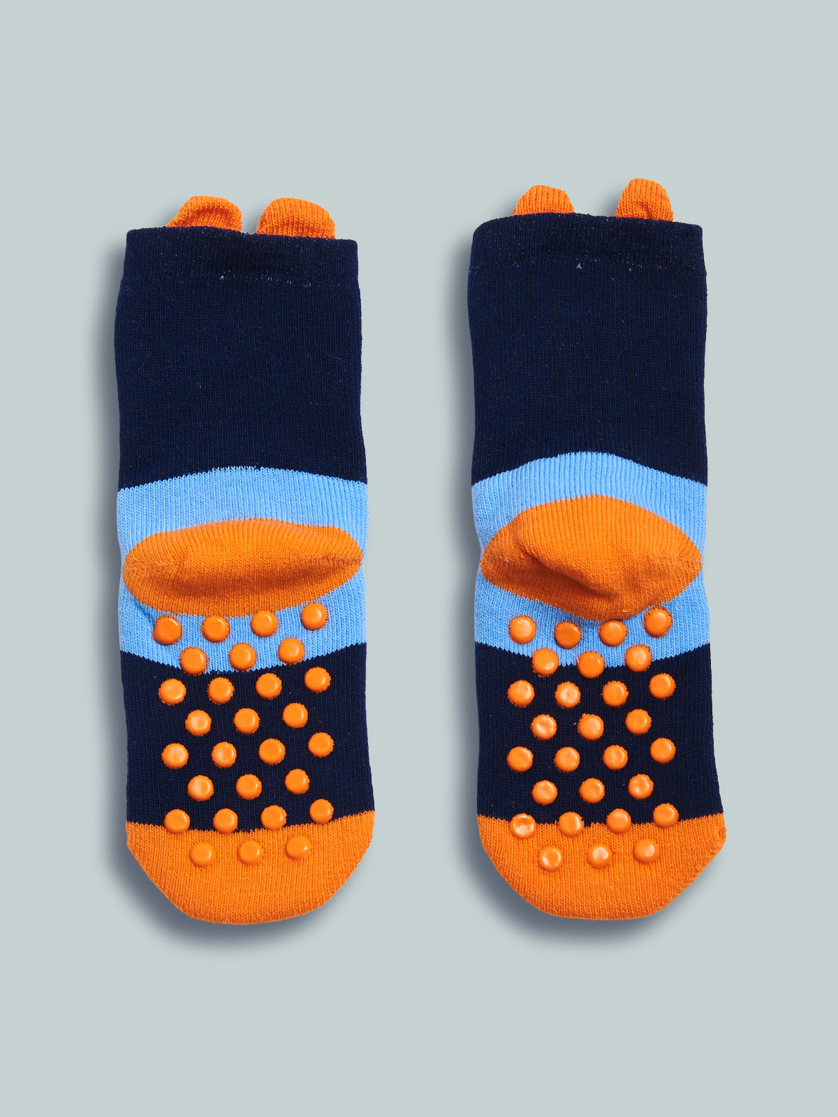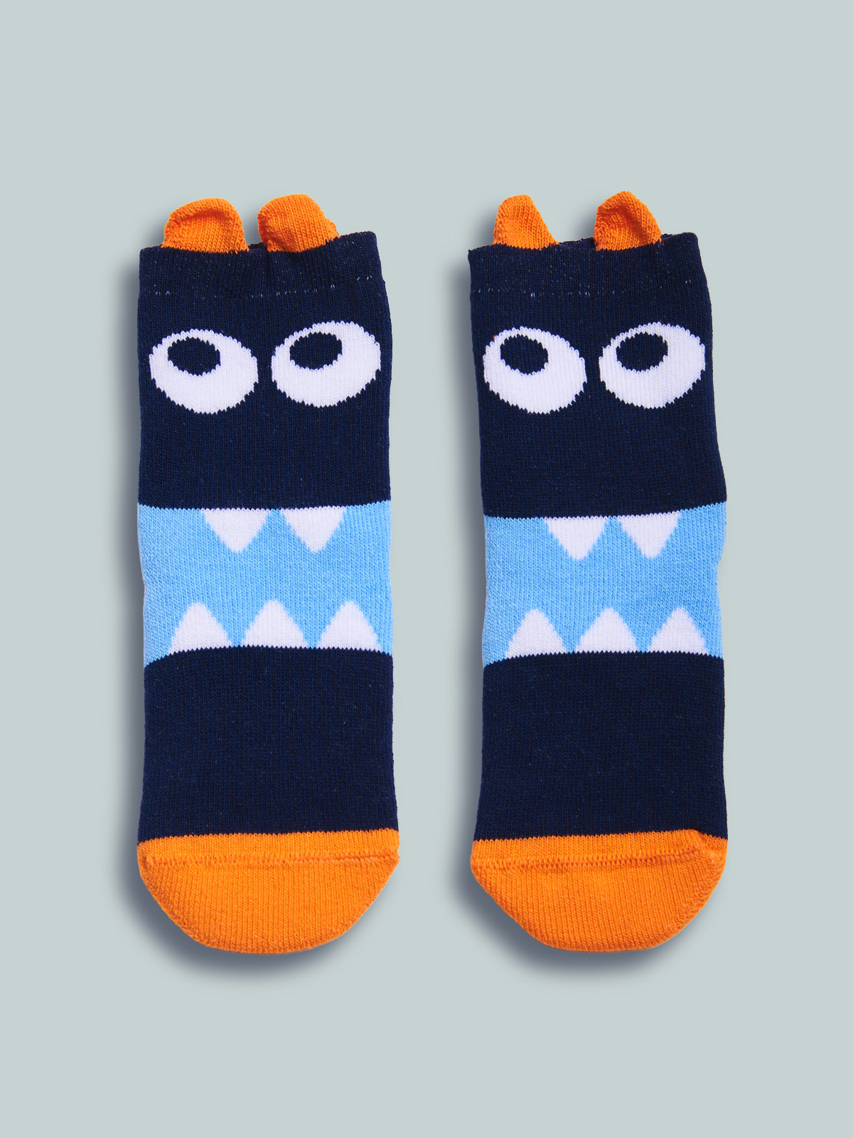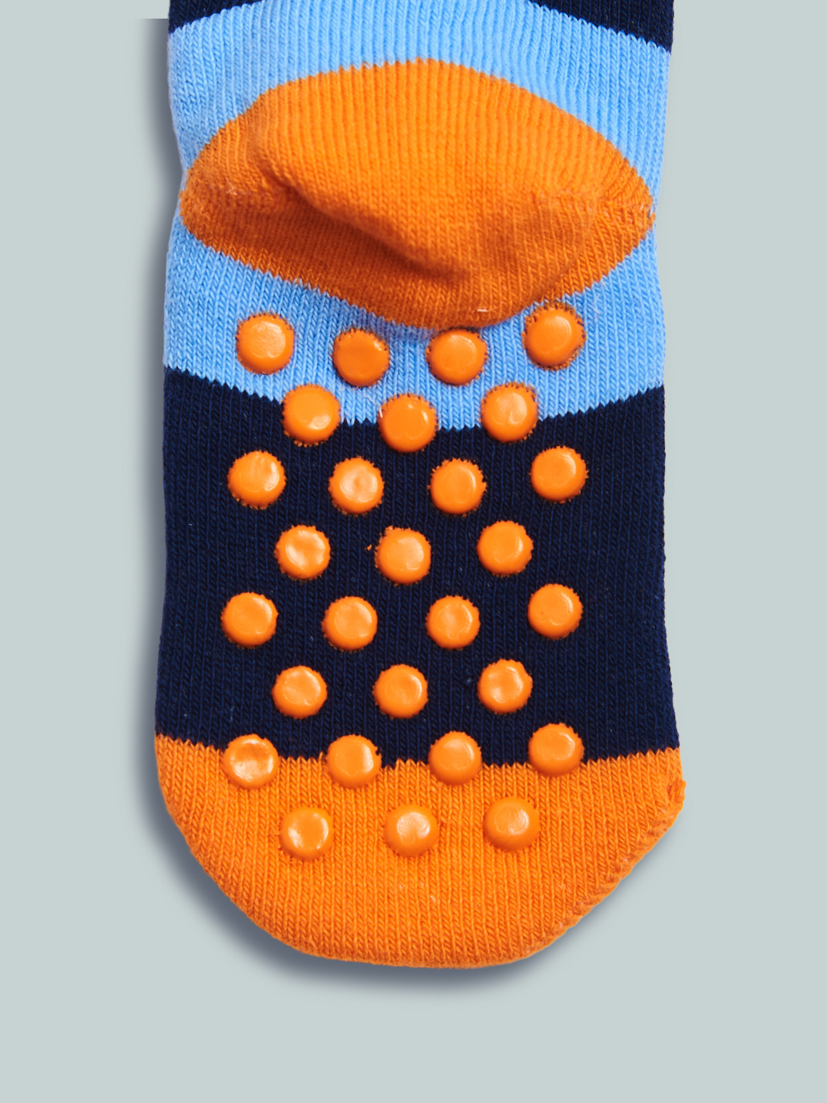 Calze antiscivolo in spugna con simpatico mostriciattolo, pallini in gomma antiscivolo sulla pianta del piede che permettono al vostro bambino di correre per casa in piena sicurezza.