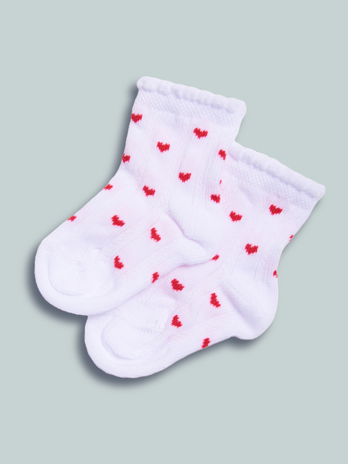 Calzini lunghezza sopra caviglia in morbido misto cotone con greche e cuori. Ideale per essere eleganti dalla testa ai piedi!