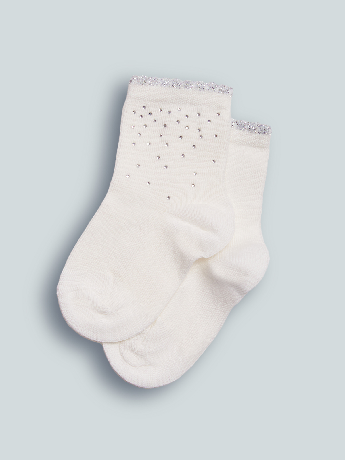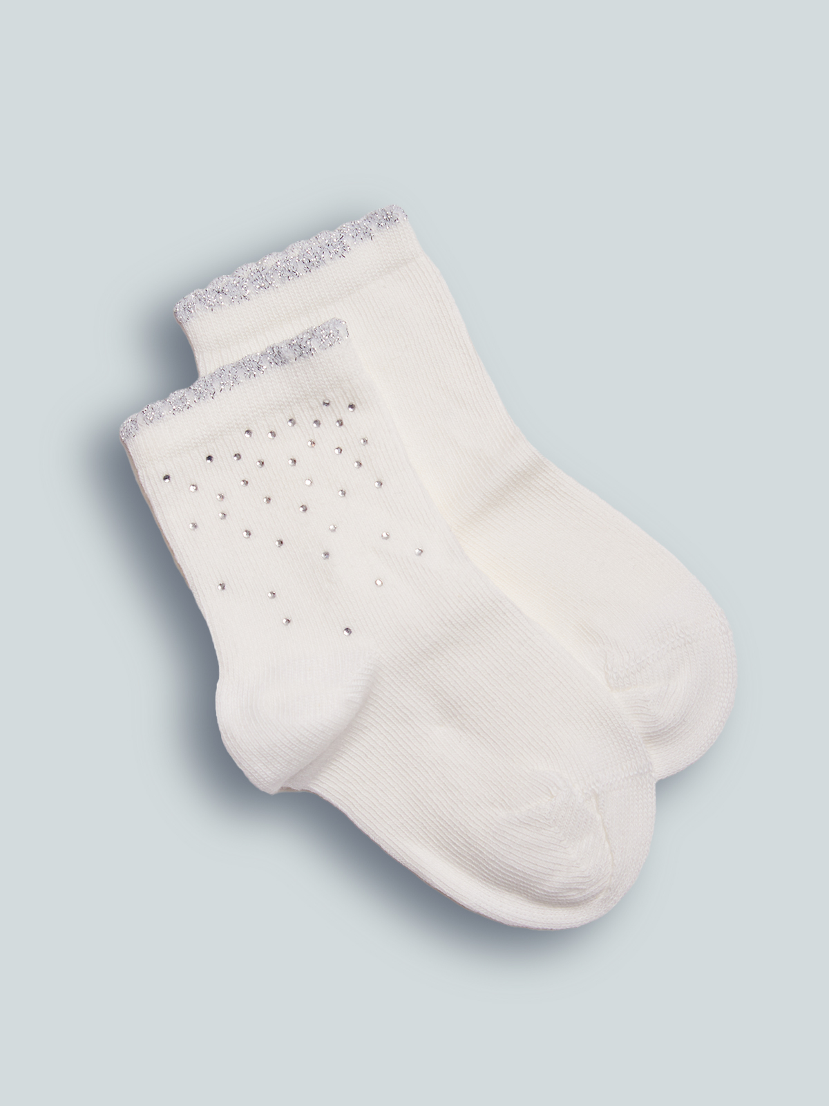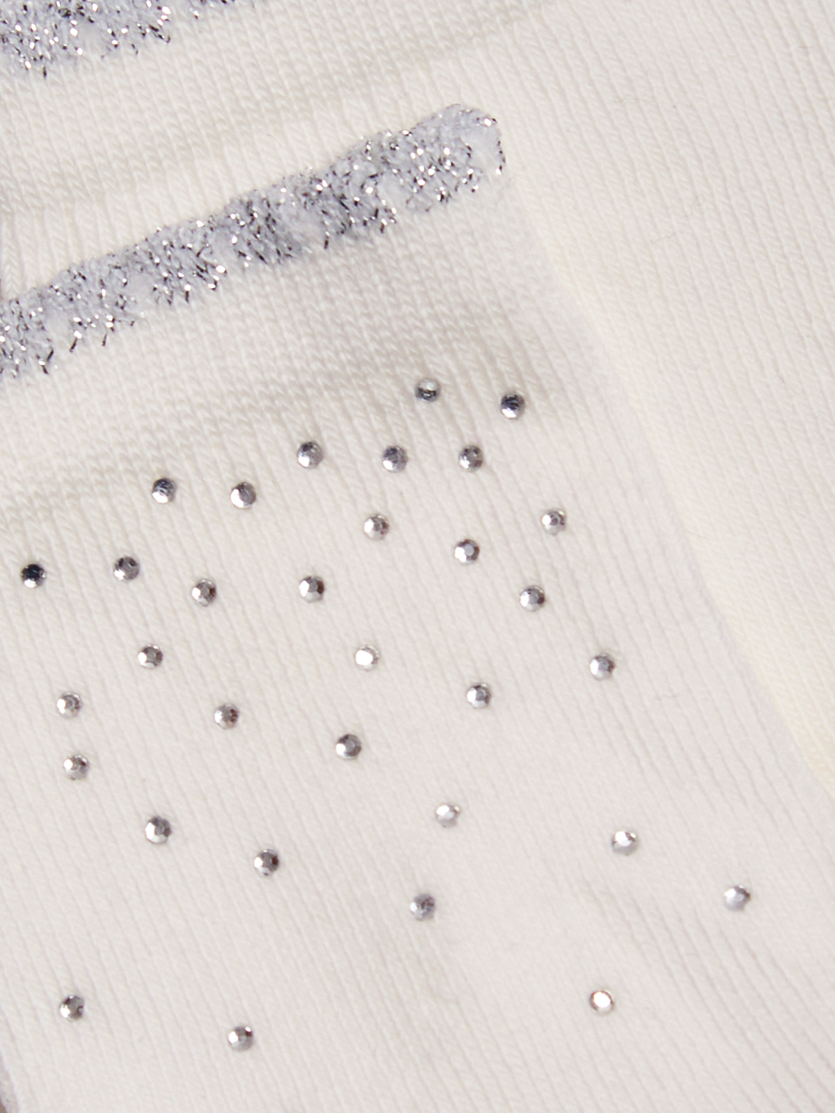 Calzini lunghezza sopra caviglia in Morbido Misto cotone con bordino lurex argento e strass. Adatti alle occasioni più chic. La proposta ideale per uno stile curato ed elegante dalla testa ai piedi.