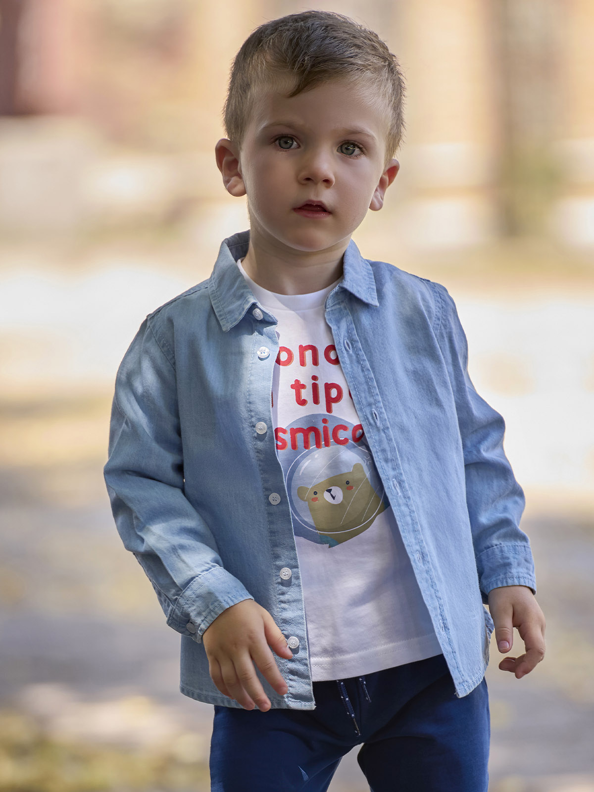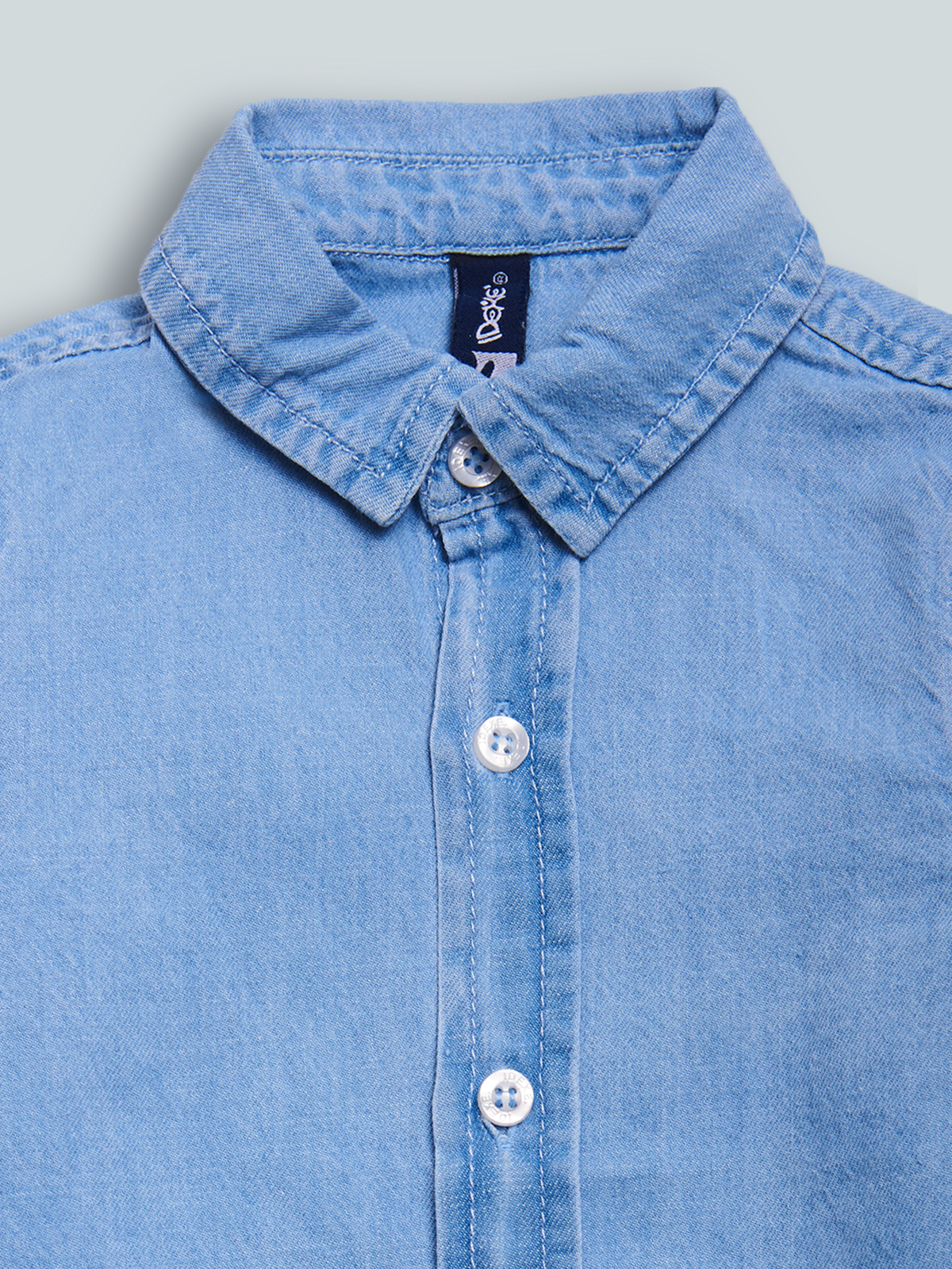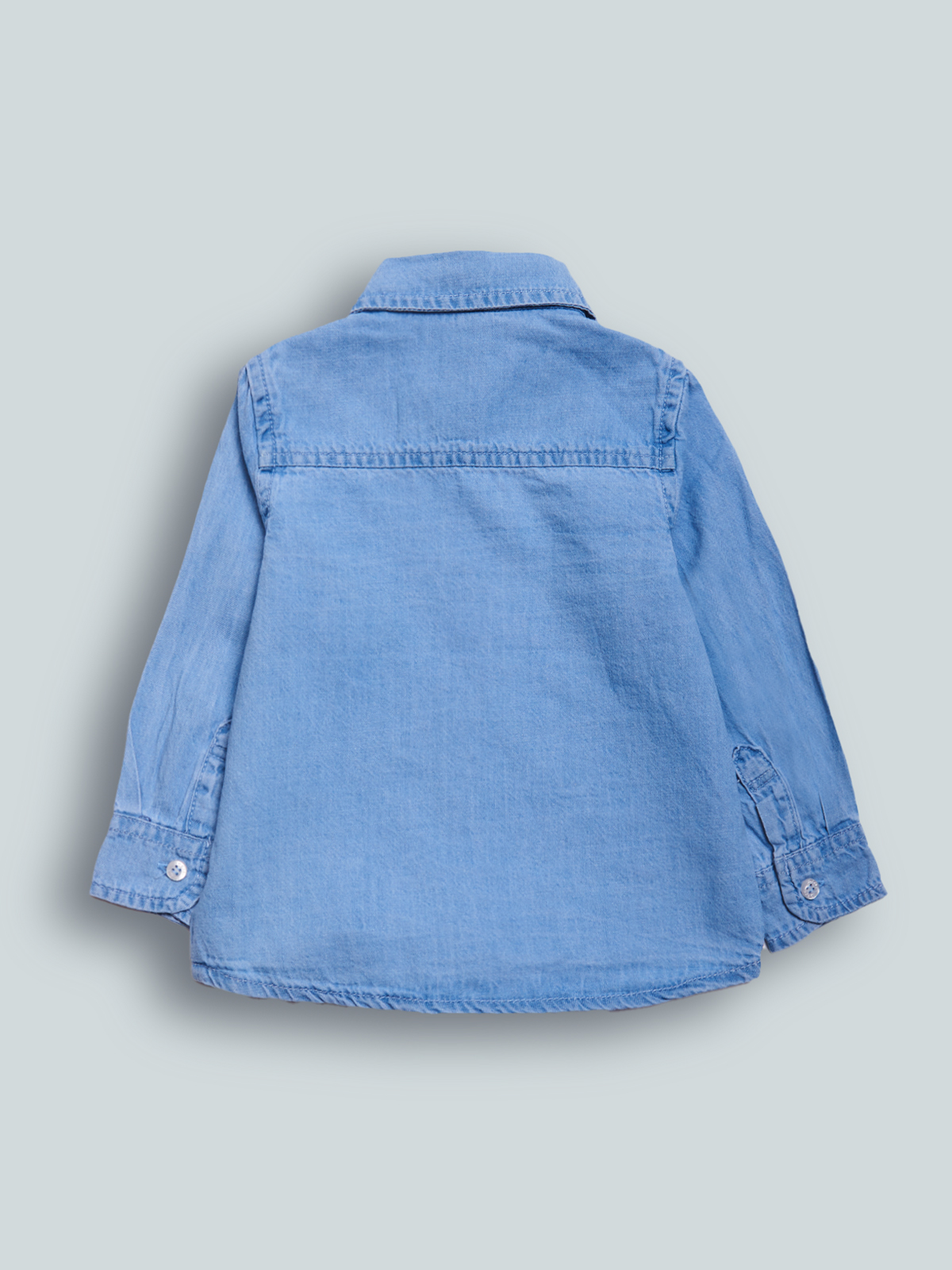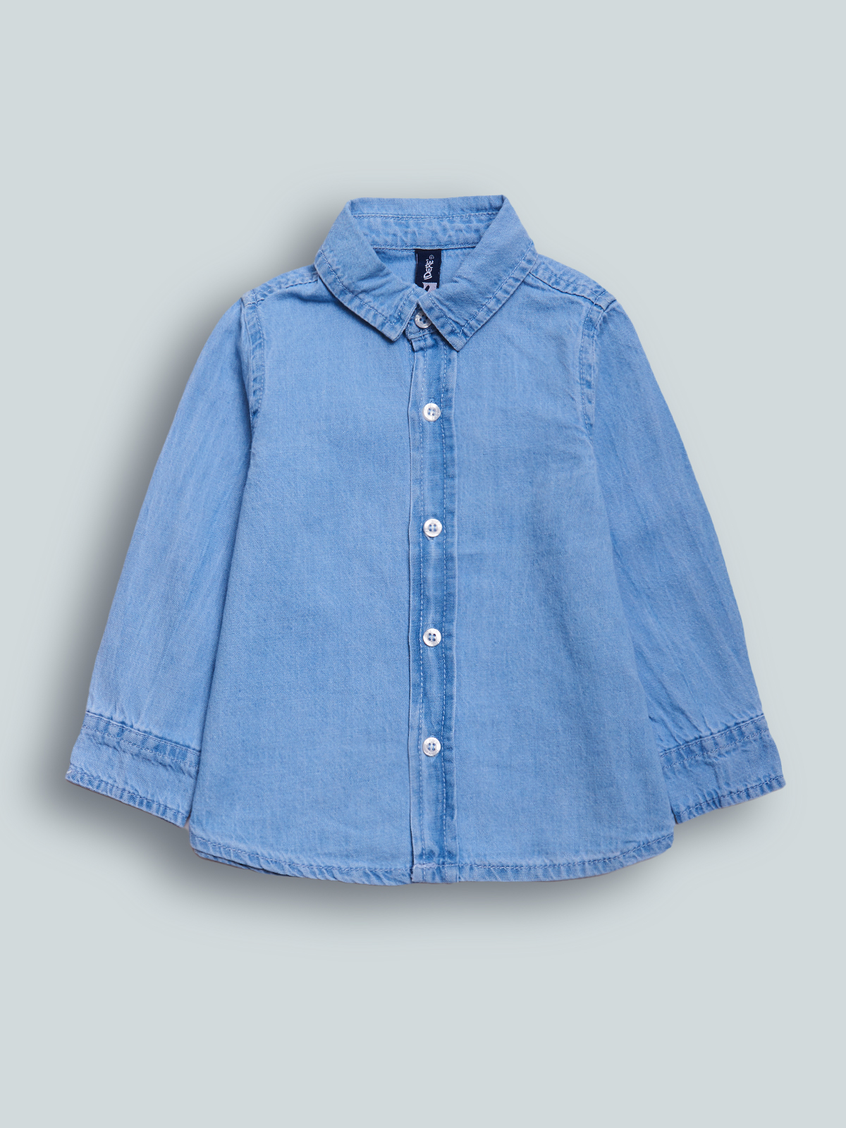 Camicia a Manica lunga in denim leggero con bottoncini effetto Madreperla, lavaggio chiaro. Un Must have sempre di tendenza che non può Mancare nell’armadio del vostro bambino.