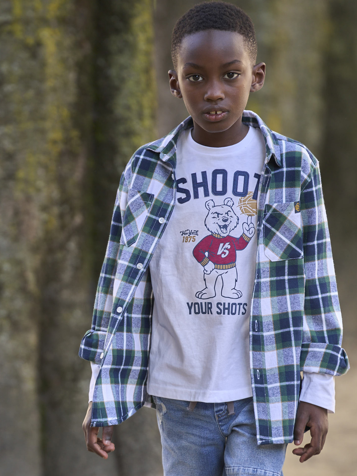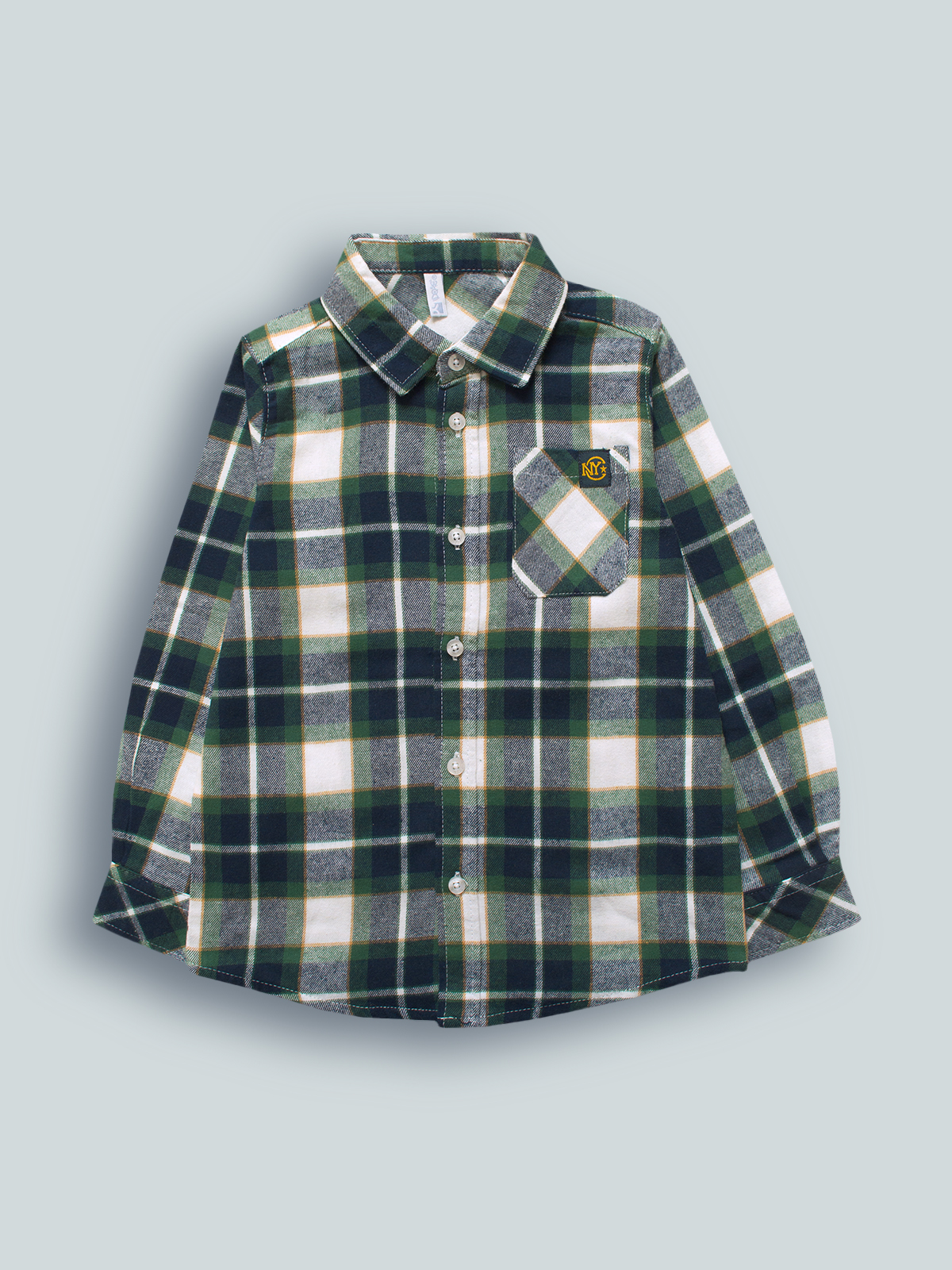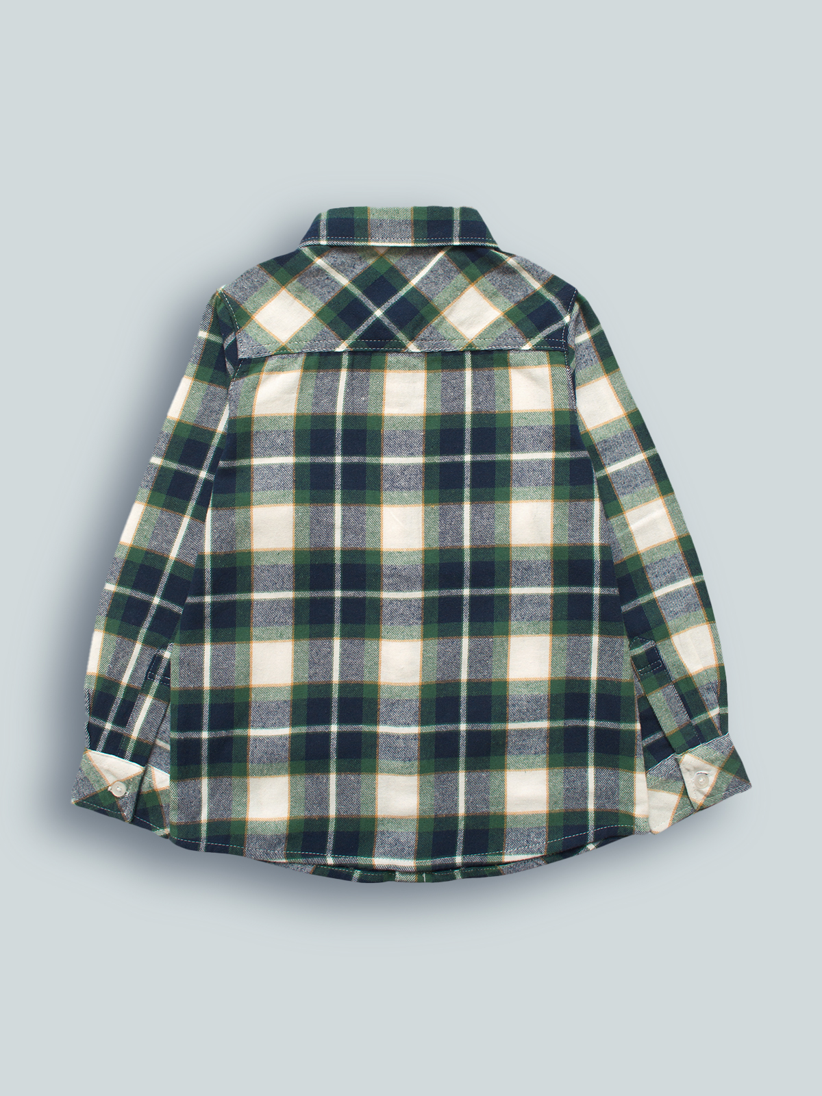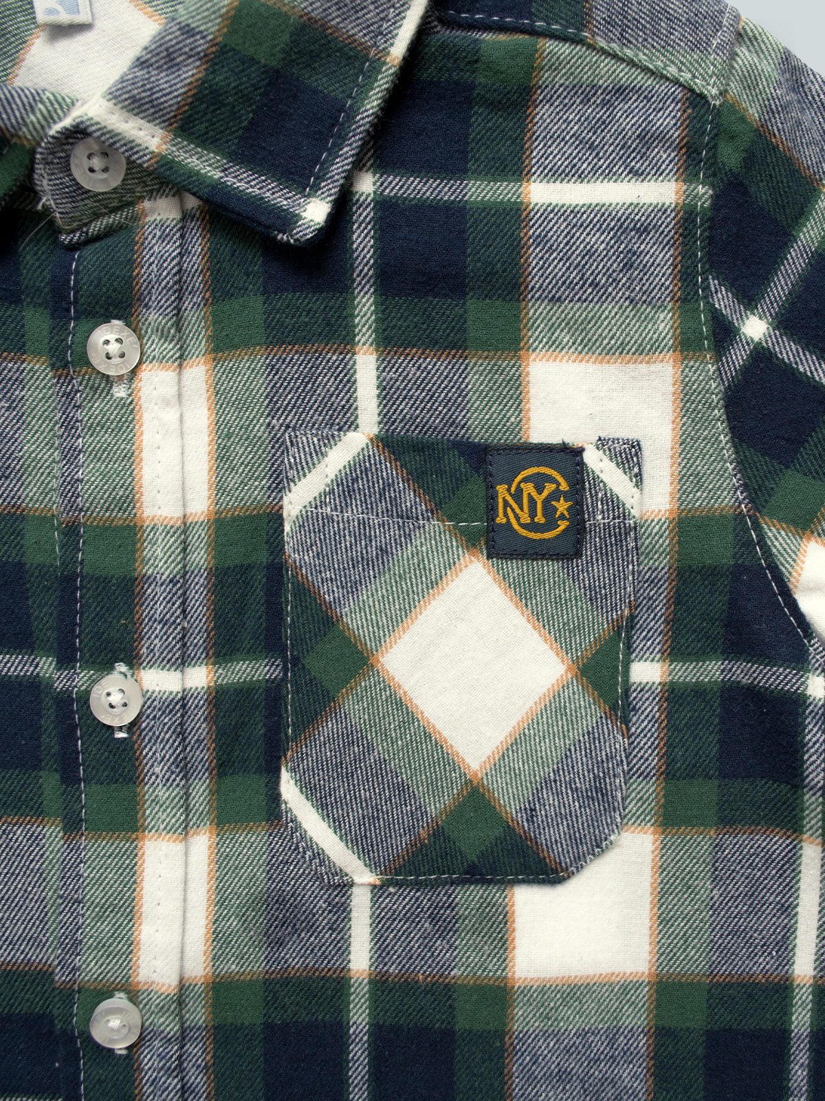 Camicia in flanella leggera scozzese, apertura davanti e polsi con bottoncini effetto madreperla, taschino sul petto. Da indossare chiusa o aperta sopra ad una t-shirt, per un look di tendenza.