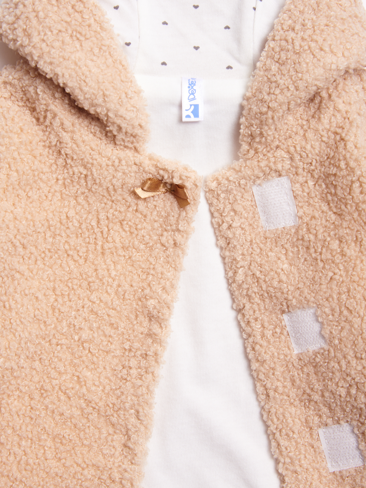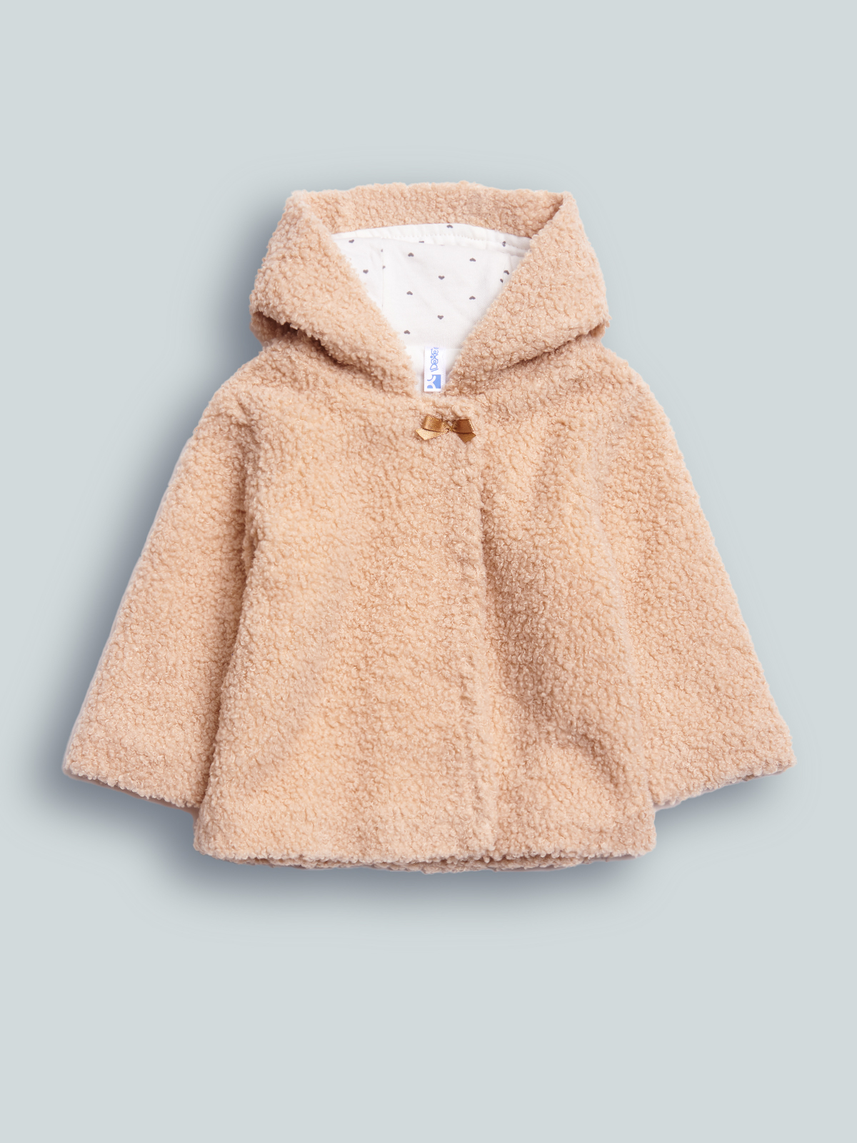 Giubbino in Morbido bouclette con cappuccio. Chiusura con pratico velcro, fodera interna in cotone stampato fantasia. Un capo super tendenza della stagione, un vero “Must Have”.