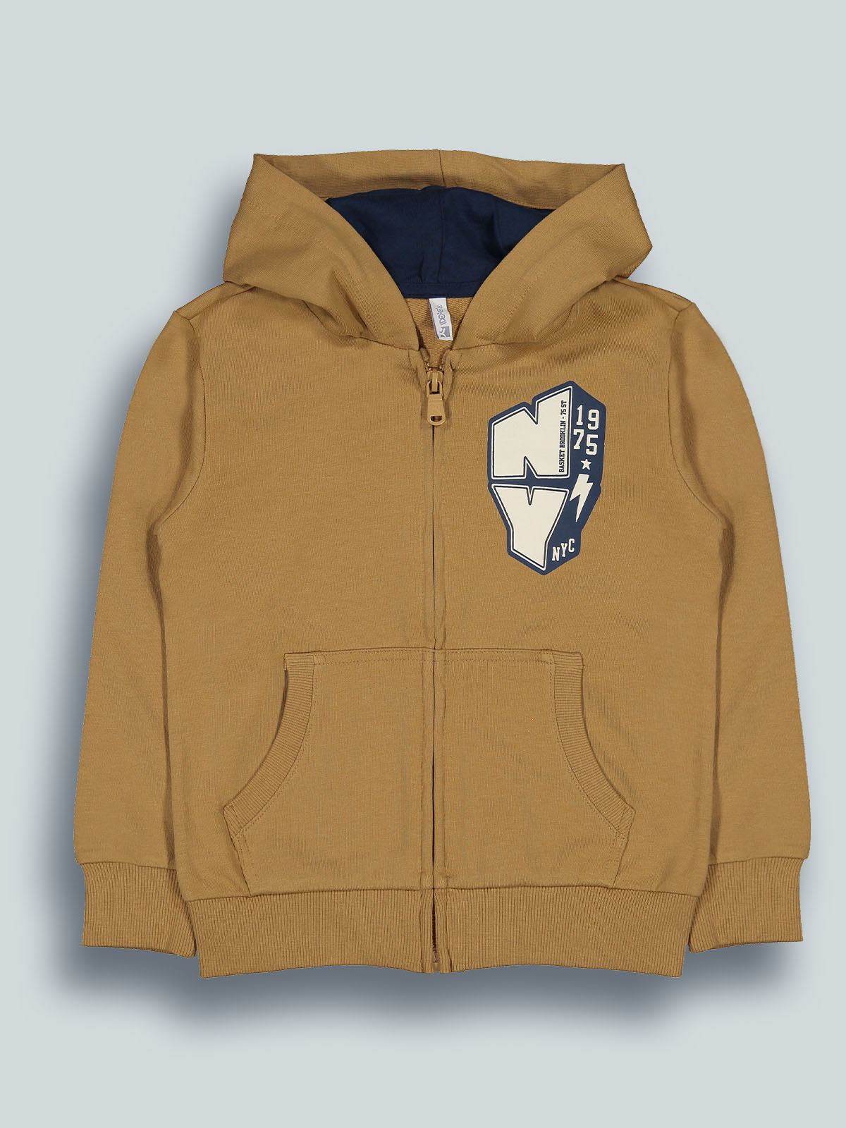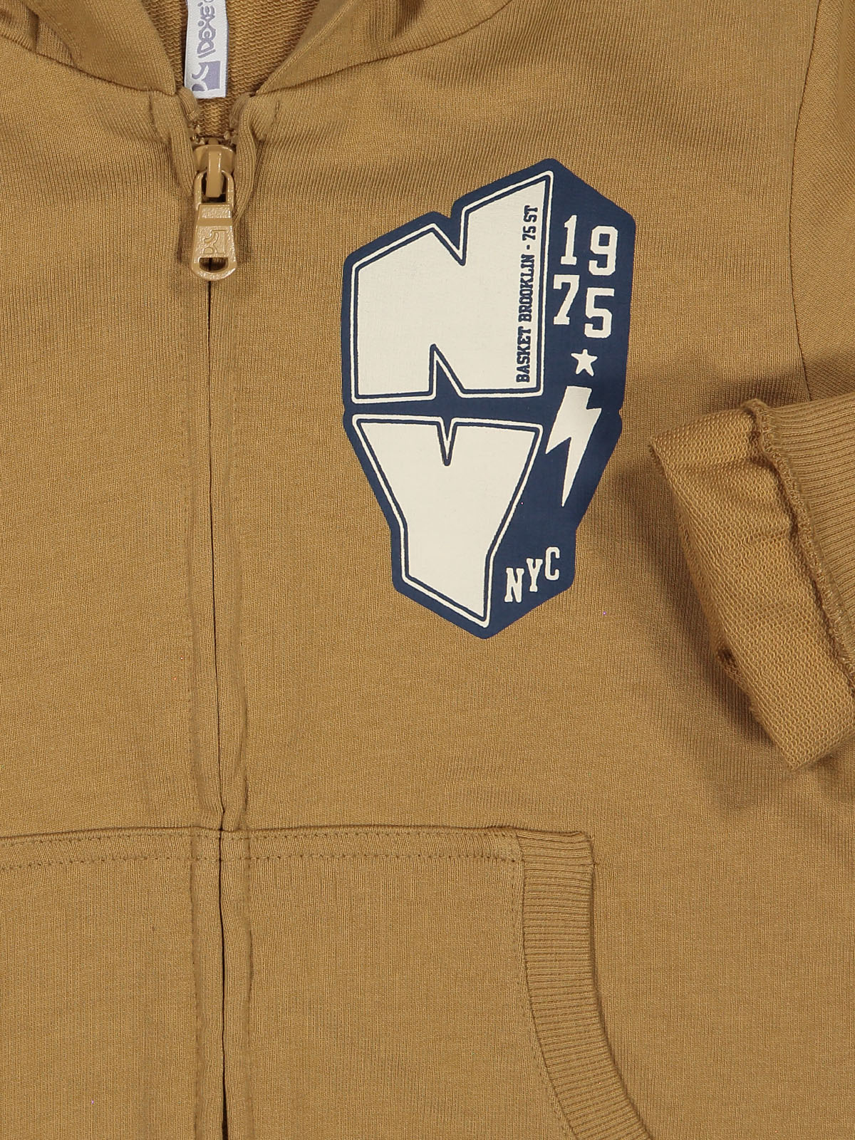 Cardigan con cappuccio in morbida felpa leggera. Polsi e fondo in costina, pratica tasca a marsupio sul davanti e apertura con zip. Stampa sul petto. Un capo basico e confortevole, da indossare tutti i giorni.