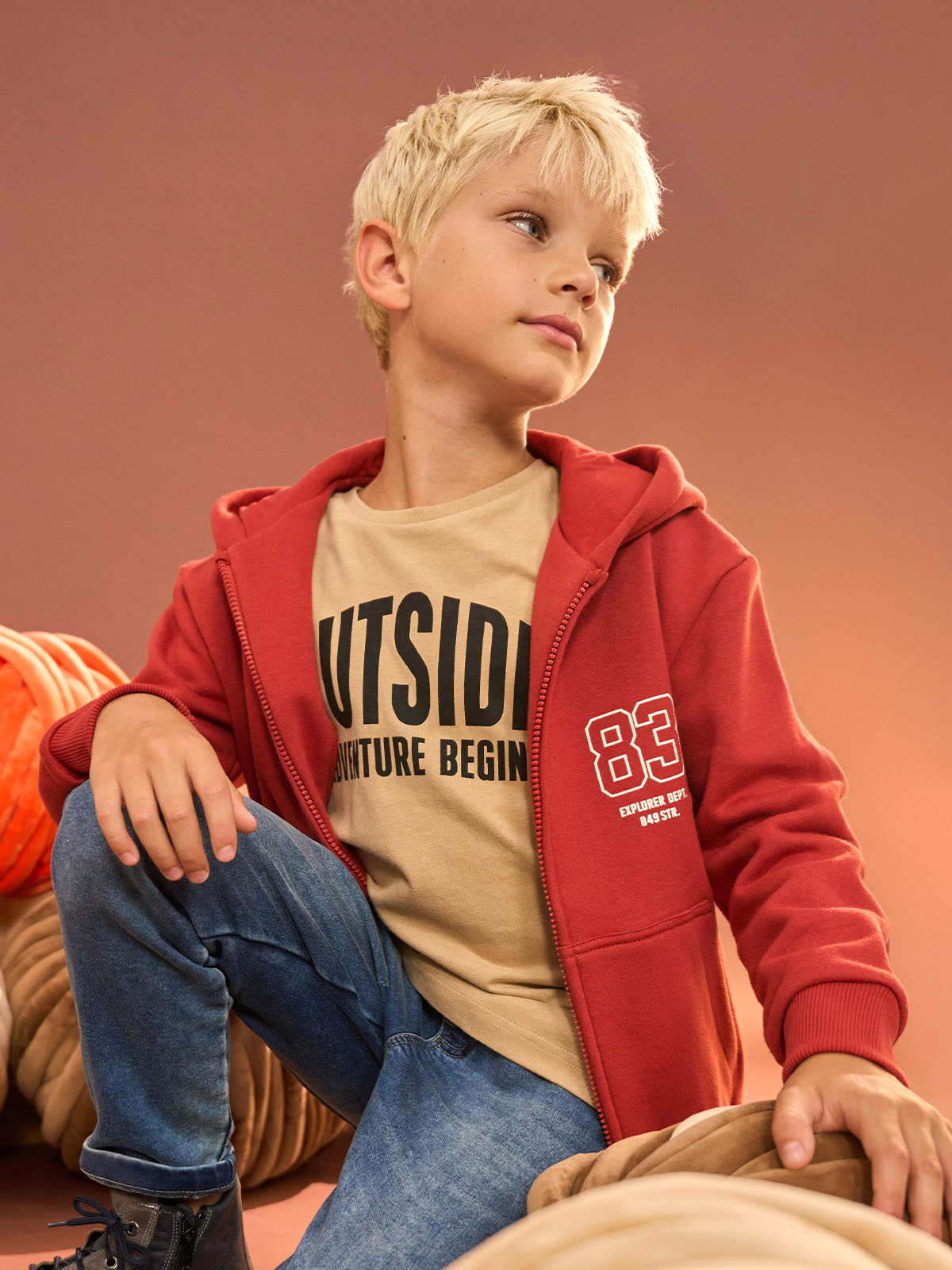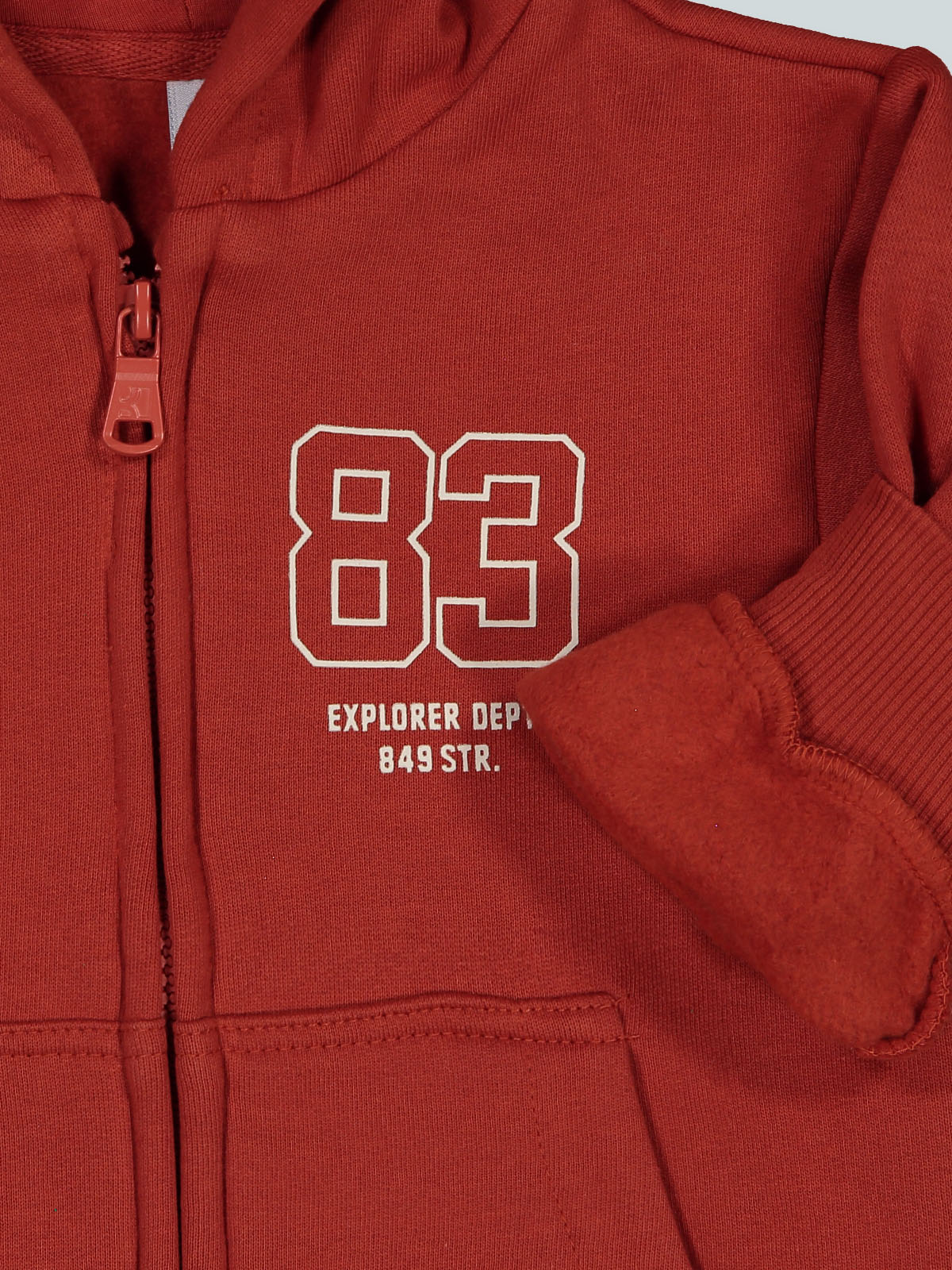 Cardigan con cappuccio in mista calda felpa ideale per le giornate più fredde. Aperto con zip, polsi e fondo in costina, pratica tasca a marsupio, stampa davanti. L’interno di questo capo è lavorato in modo tale che le fibre del tessuto si sollevino, rendendolo più morbido, soffice e caldo sulla pelle. Un capo nel colore moda di stagione, pratico e comodo da indossare tutti i giorni.