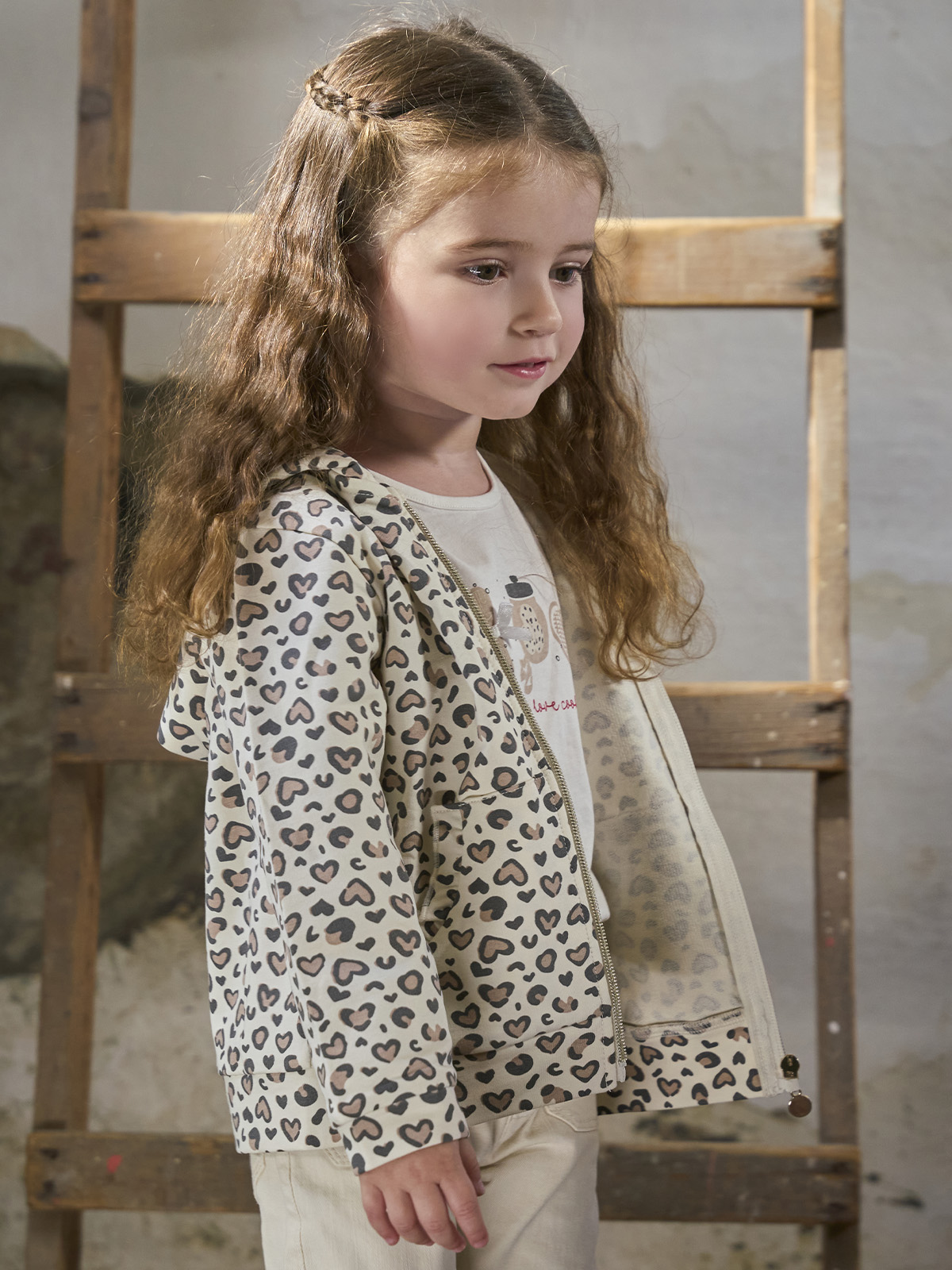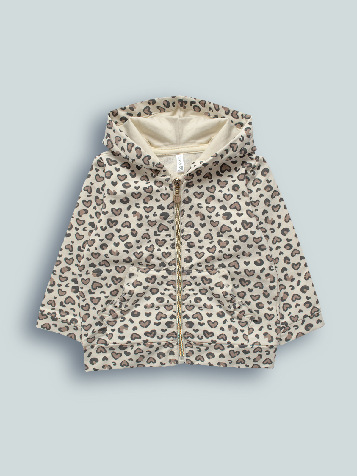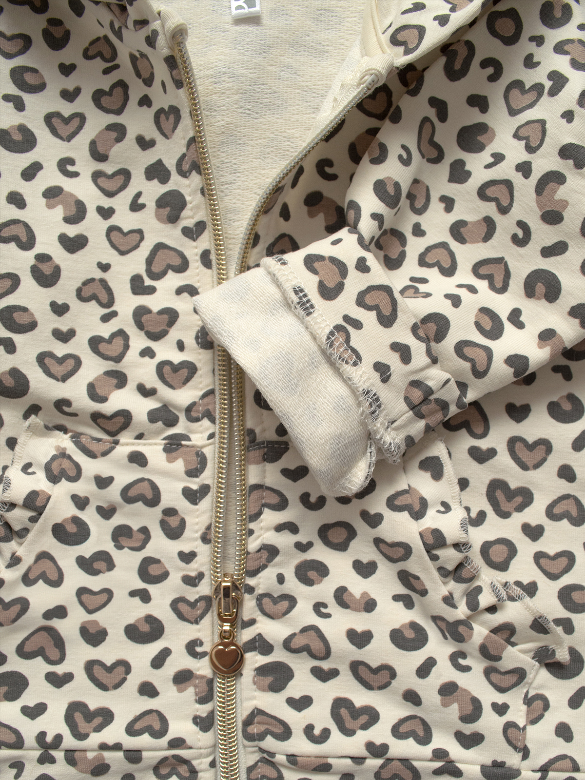 Cardigan in Morbida felpa leggera, Manica lunga con cappuccio, fantasia Maculato. Pratica da indossare grazie all’apertura frontale con zip. Un capo Molto pratico e dall’apetto grintoso.