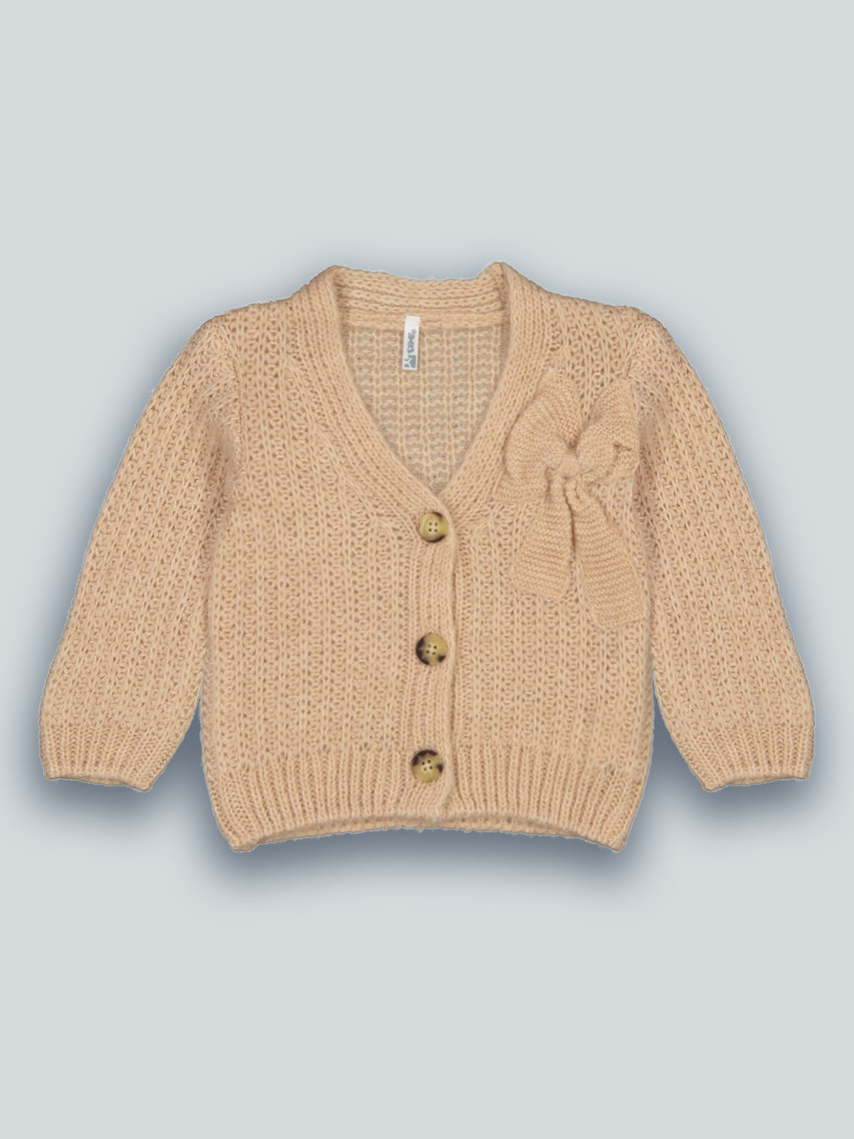 Cardigan in maglia di morbido misto cotone con fiocco sul davanti, manica lunga. Pratico da aindossare grazie all’apertura con bottoni. Un capo caldo con dettagli chic. Ideale per affrontare l’inverno con stile.