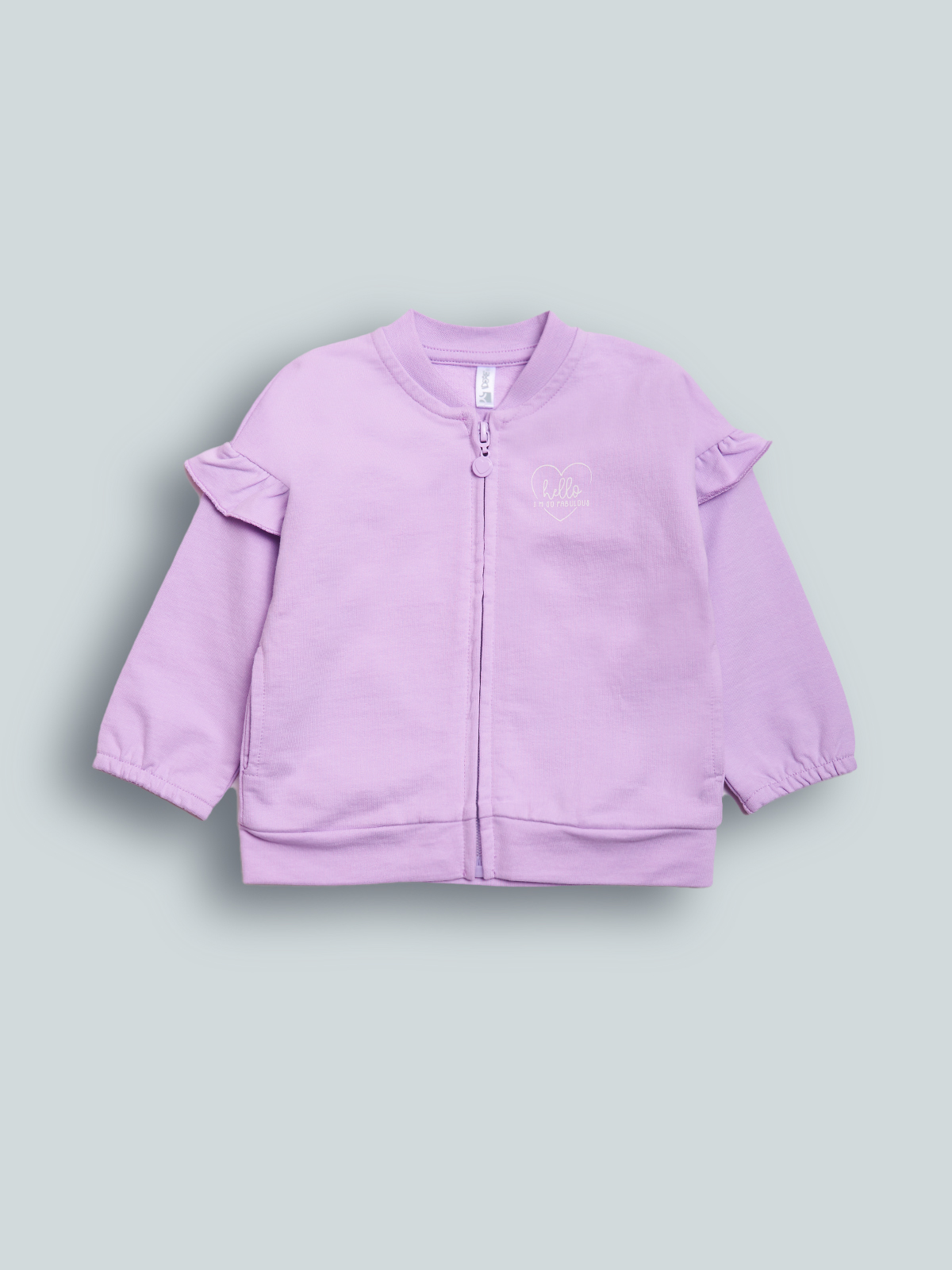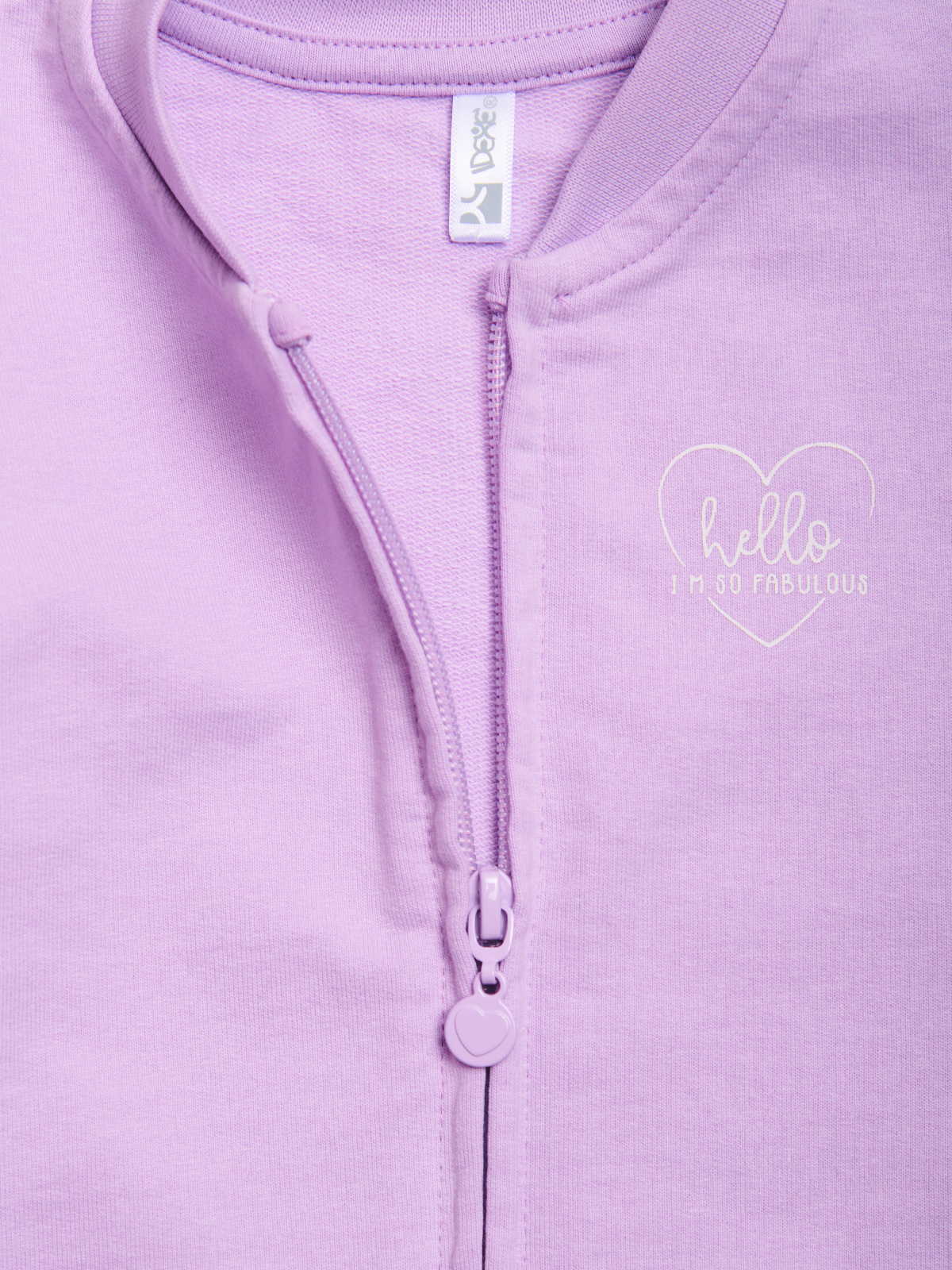 Cardigan in Morbida felpa leggera Manica lunga con collo in costina. Romantica stampa scritta sul davanti. Pratica da indossare grazie all’apertura frontale con zip. Rouches al giromaica per ancora più femminilità. Un capo versatile e di facile abbinamento.