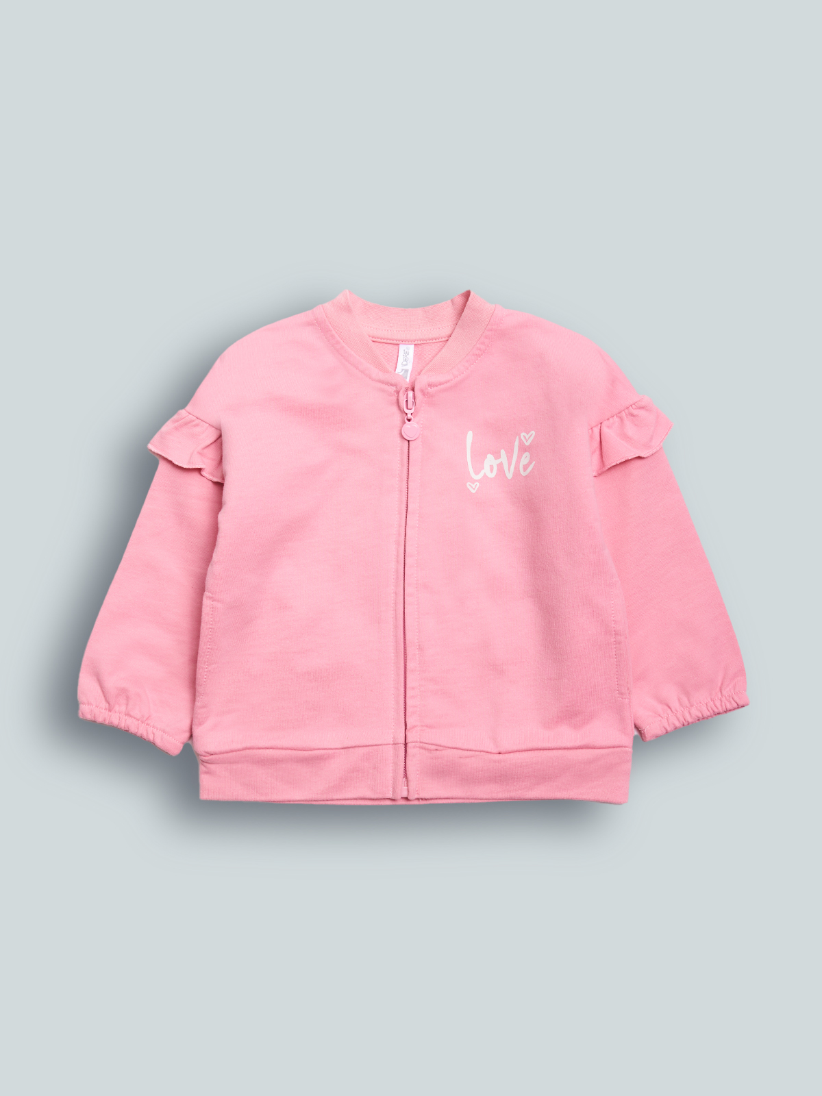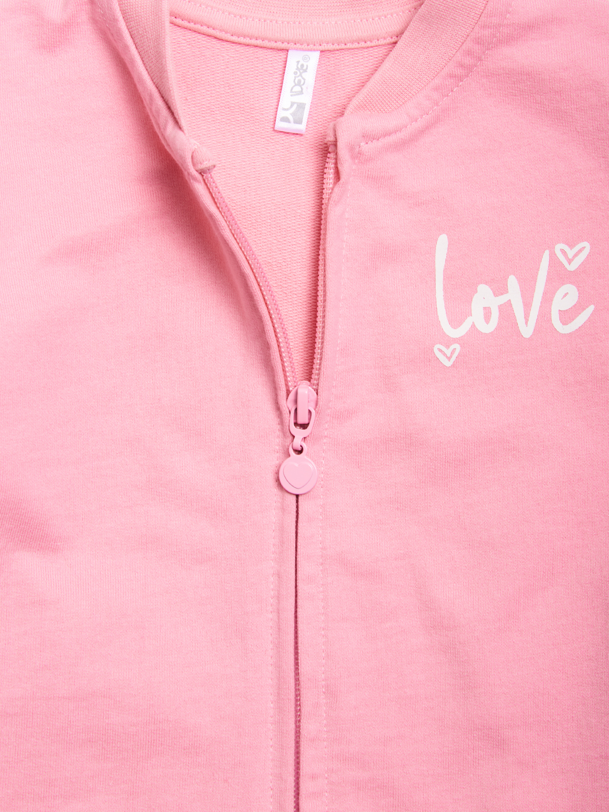 Cardigan in Morbida felpa leggera Manica lunga con collo in costina. Romantica stampa scritta sul davanti. Pratica da indossare grazie all’apertura frontale con zip. Rouches al giromaica per ancora più femminilità. Un capo versatile e di facile abbinamento.