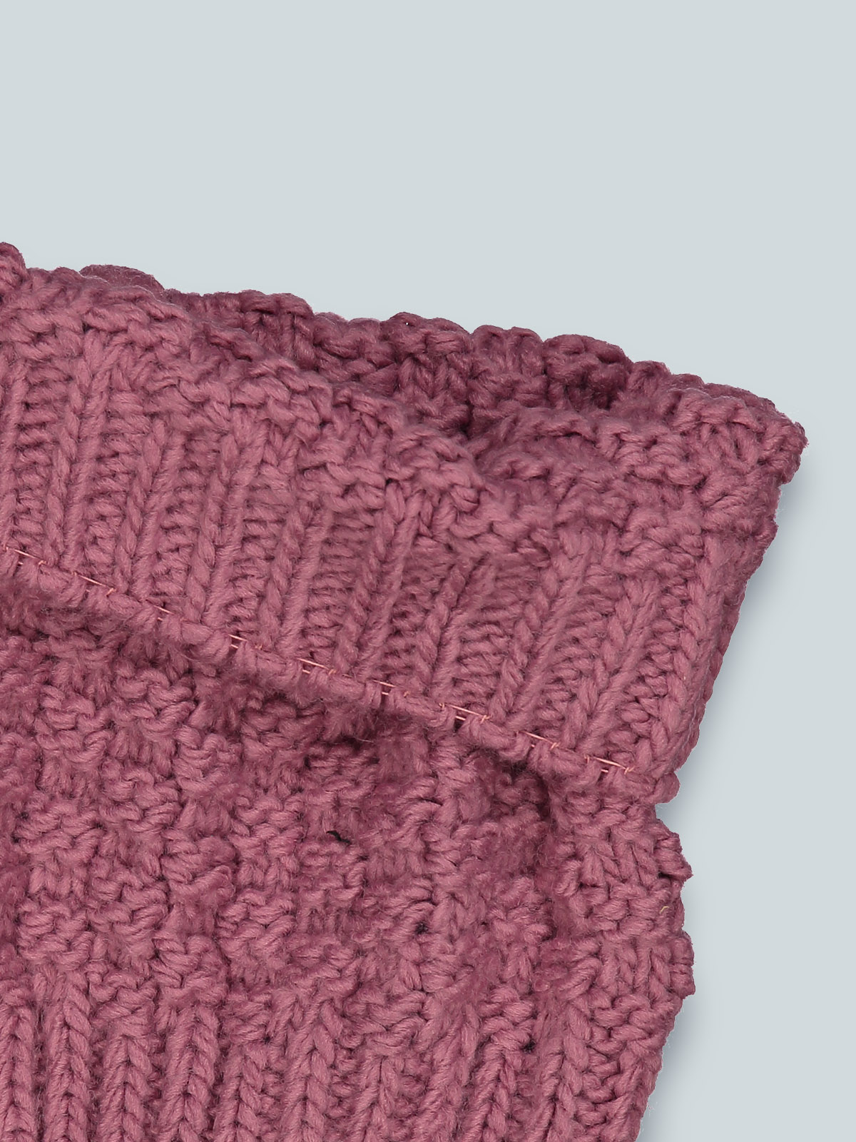 Collo in maglia di morbido cotone. E’ perfettamente abbinabile alla sua cuffia, realizzata con lo stesso filato. La cuffia ideale per tenere al caldo la vostra bambina nelle giornate invernali.