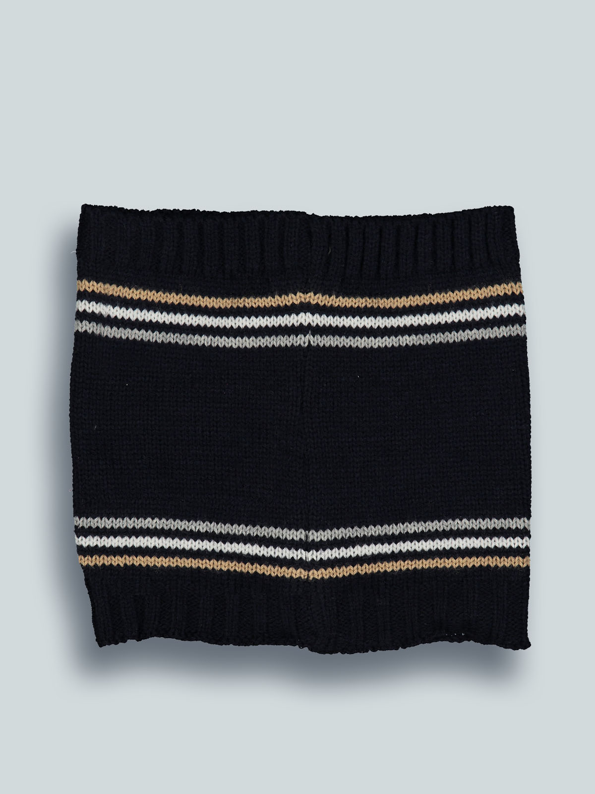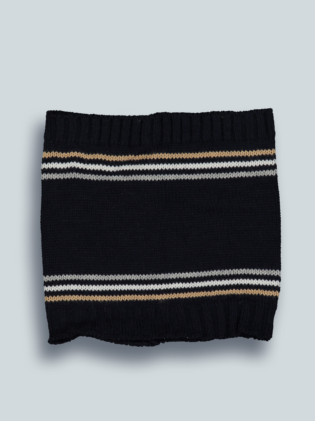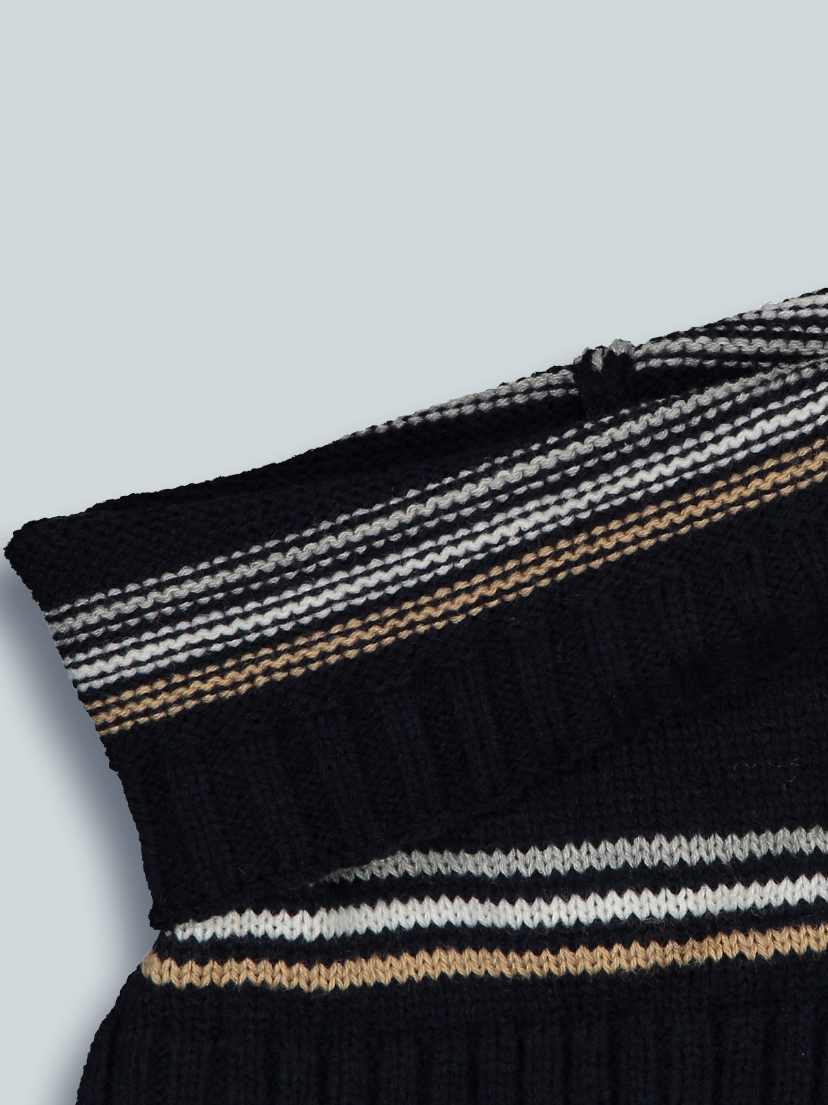 Collo in caldo e morbido tricot rigato. Il capo ideale per affrontare le fredde giornate d’inverno, perfetto da abbinare alla cuffia coordinata.