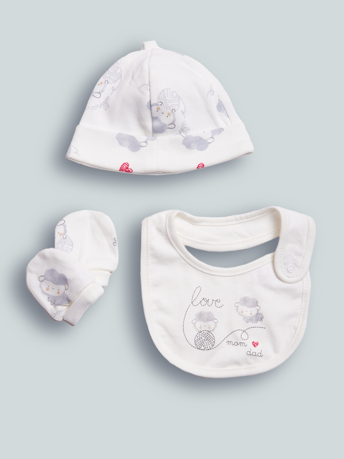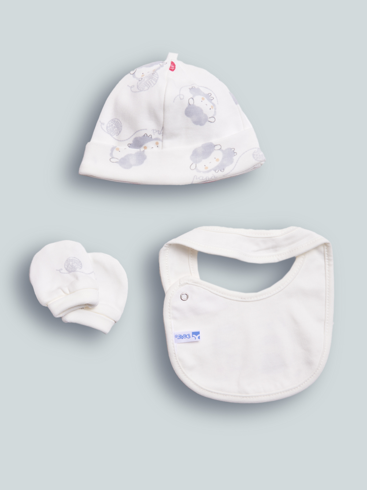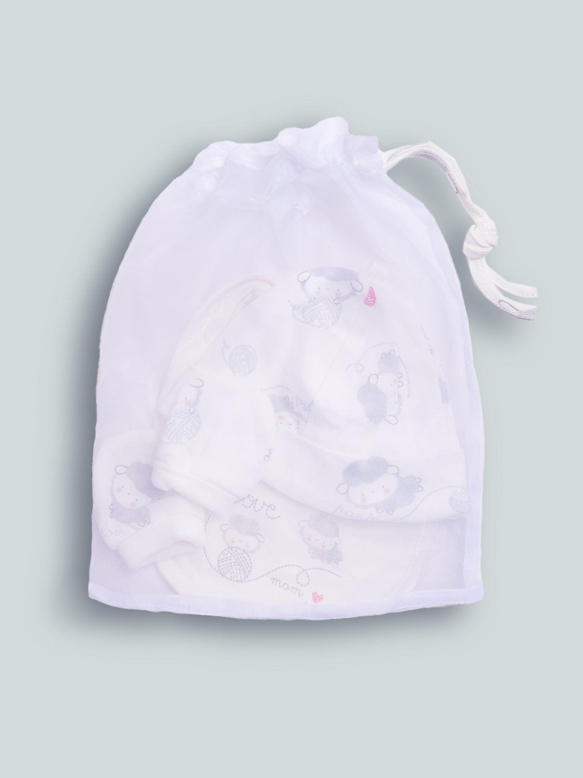 Morbido sacchetto organza contenente: 1 cappellino, 1 bavetta, 1 Moffola in caldo cotone per i primi giorni. Questo accessorio fa parte del corredino composto da tutti gli articoli indispensabili per il tuo neonato.