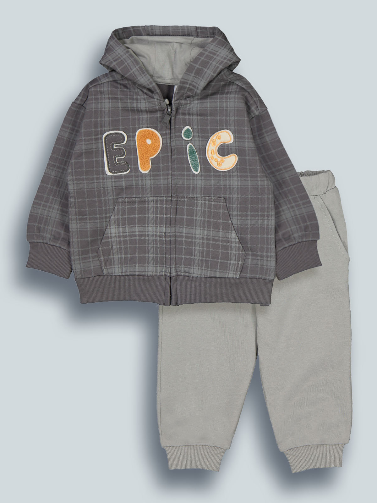 Completo due pezzi in calda felpa ideale per le giornate più fredde. Cardigan con cappuccio stampato in scozzese, apertura con zip, tasca a marsupio e ricamo sul davanti. Pantaloni con vita elasticata e coulisse regolabile, tasche davanti, fondo gambe in costina. L’interno di questo capo è lavorato in modo tale che le fibre del tessuto si sollevino, rendendolo più morbido, soffice e caldo sulla pelle. Ideale per la scuola e per il tempo libero.