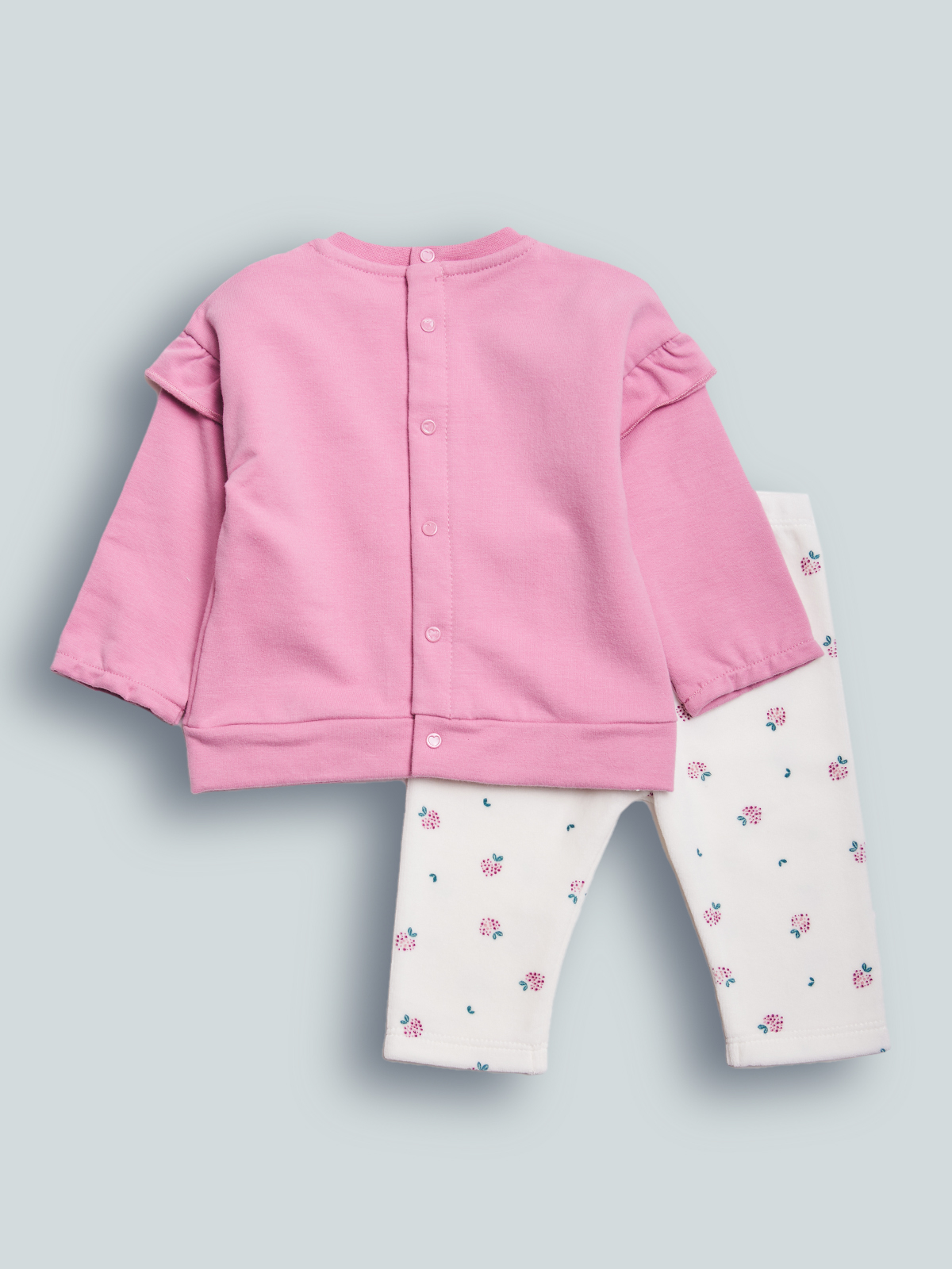 Completo due pezzi: maglia in calda felpa elasticizzata, apertura totale sul dietro. Spalla scesa e rouches al giromanica per maggiore femminilità. Leggings ciniglia stampata, vita elasticata. L’interno della felpa di questo capo è lavorato in maniera tale che le fibre del tessuto si sollevino, rendendolo più morbido, soffice e caldo sulla pelle. Ideale per le giornate più fredde. Un completo molto pratico e alla moda al tempo stesso.