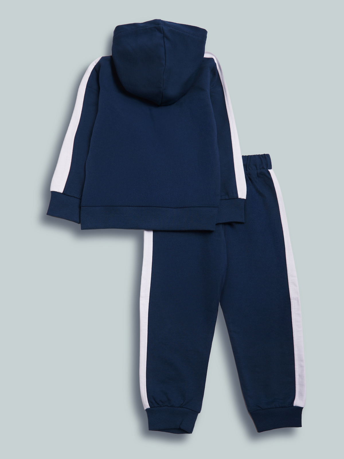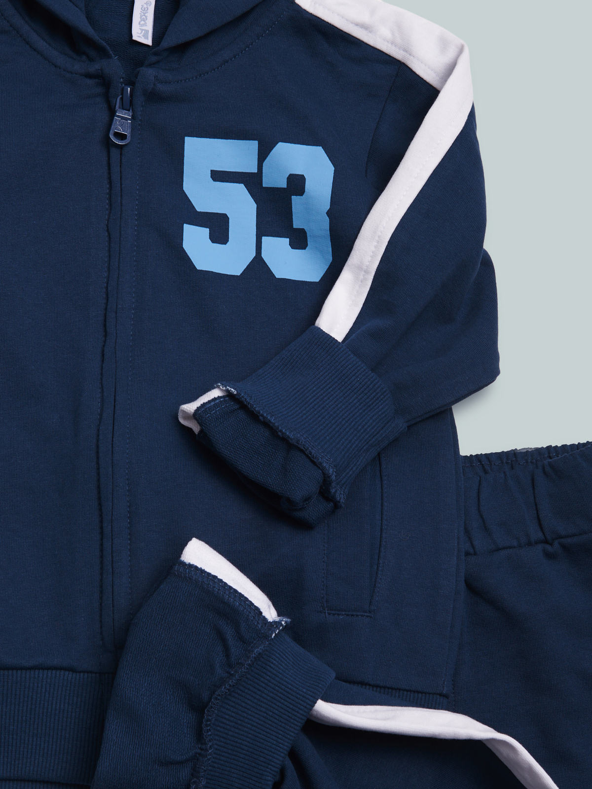 Completo due pezzi in morbida felpa leggera. Cardigan con cappuccio, aperto con lampo e striscie in contrasto su maniche. Morbida costina per polsi e fondo, tashe a filetto e stampa sul davanti. Pantaloni con morbida costina per vita e fondo, striscie in contrasto sui fianchi, pratiche tasche. Un capo di tendenza in stile color block, ideale per i momenti di sport e tempo libero.