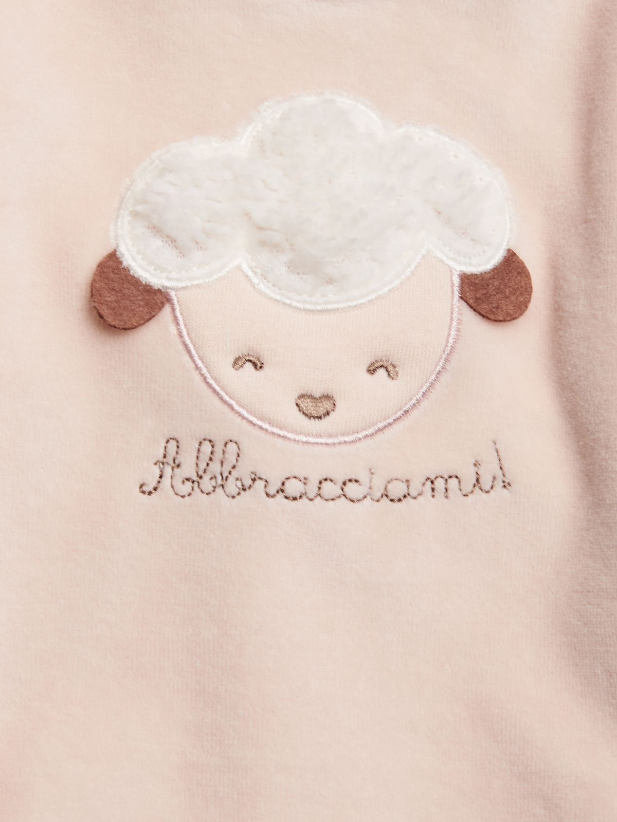 Completo due pezzi composto da coprifasce ciniglia, apertura totale sul dietro con bottoni a pressione. Elemento decorativo: ricamo con applicazioni, ghettina ciniglia stampata. Fantastico per tutti i giorni, data la sua praticità. Questo completo fa parte del corredino composto da tutti gli articoli indispensabili per il tuo neonato.