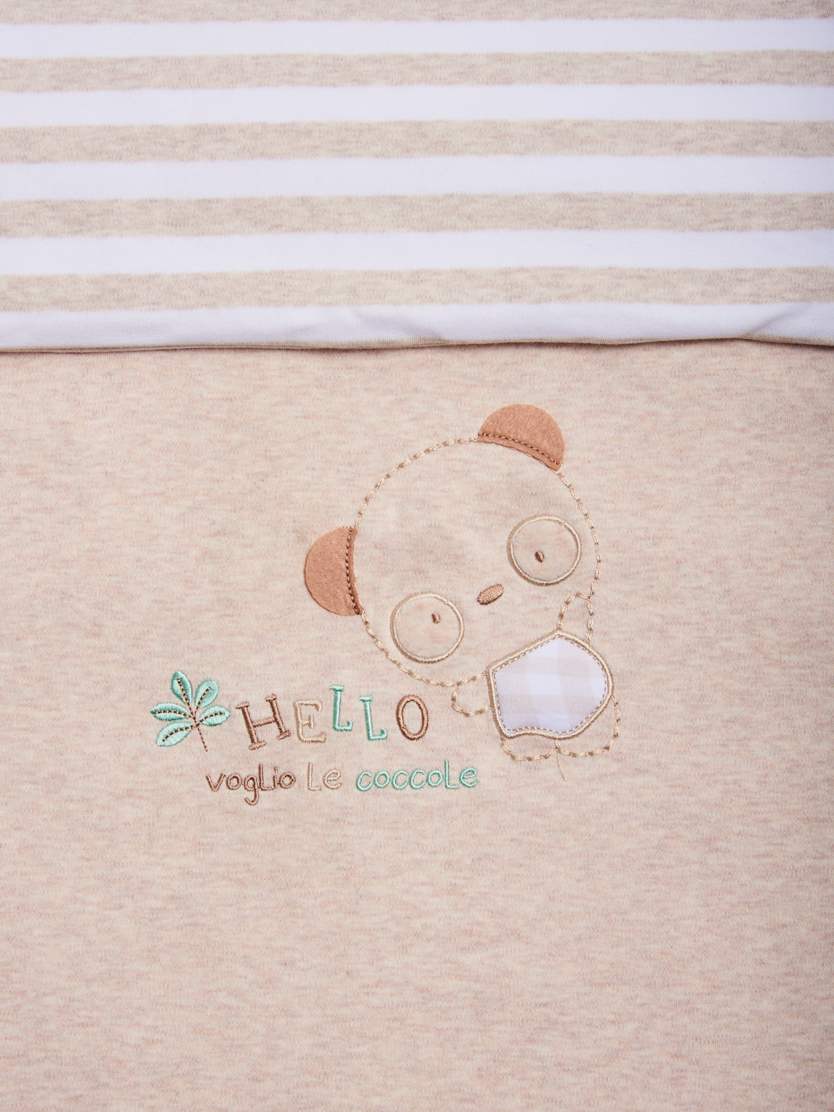Calda copertina con la quale il tuo piccolo/a si sentirà protetto durante i suoi riposini. Tessuto caldo cotone rigato e unito. Elemento decorativo: grafica ricamata riproposto su altri articoli newborn neonato. Particolarità dell’ articolo: sacco imbottito estraibile. Dimensioni dell’articolo: 82 x 60cm. Questo accessorio fa parte del corredino composto da tutti gli articoli indispensabili per il tuo neonato.