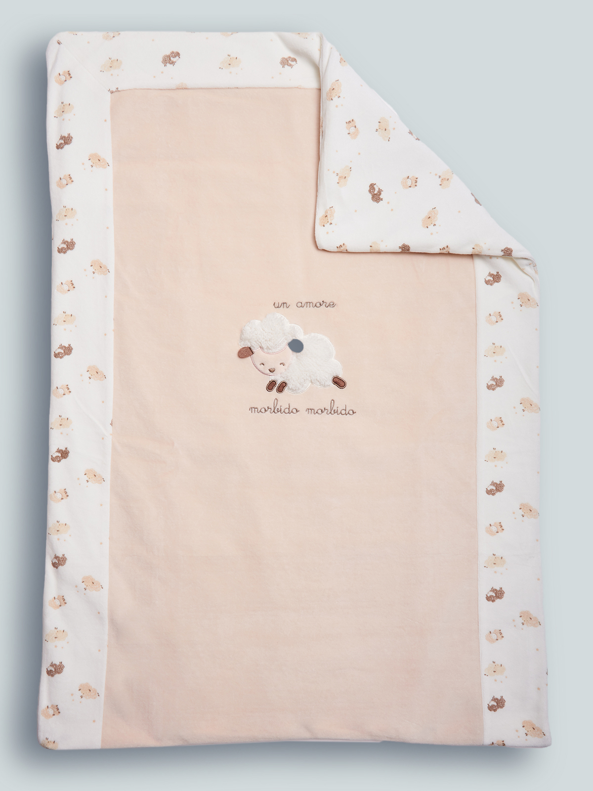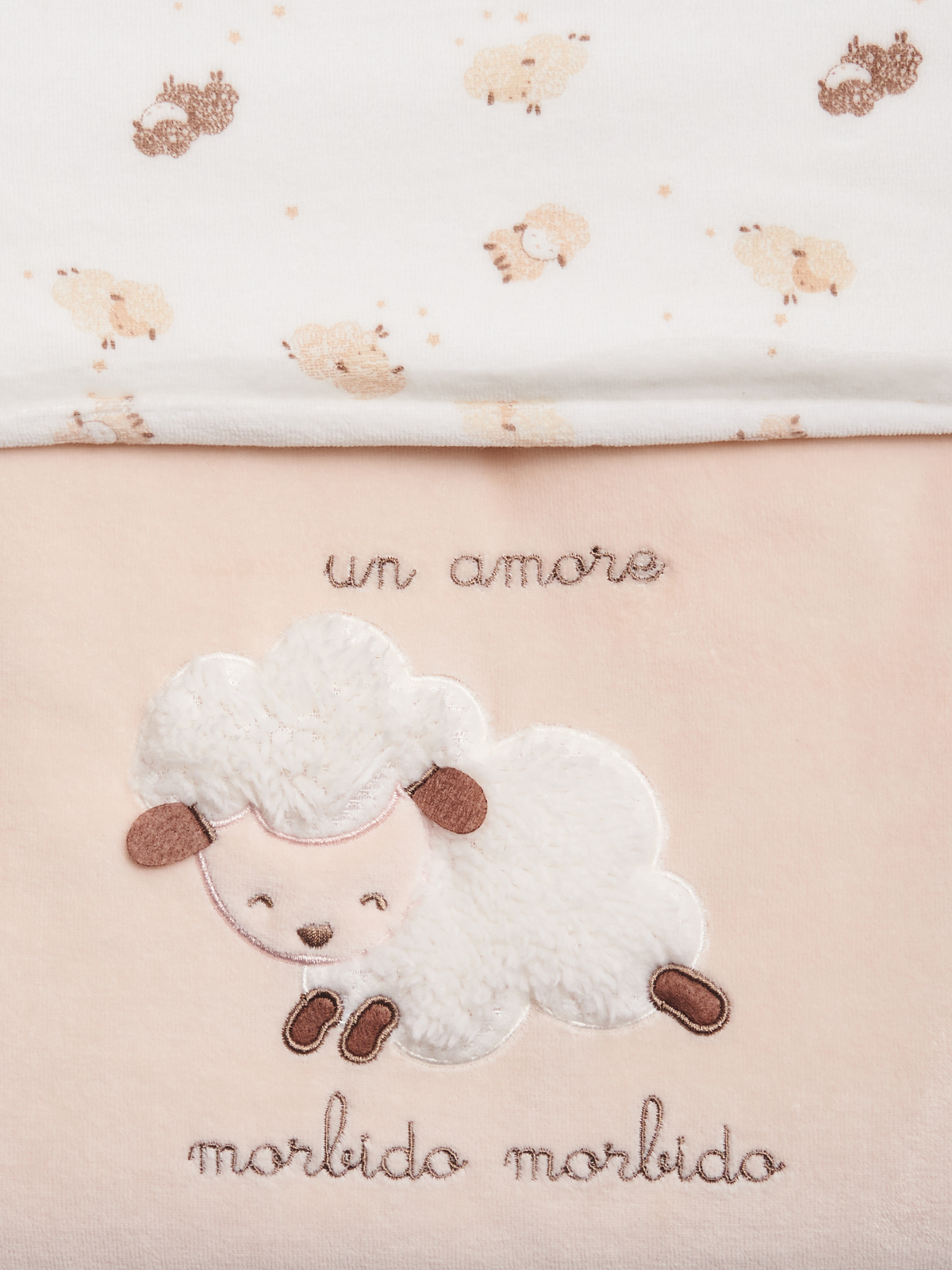 Calda copertina con la quale il tuo piccolo/a si sentirà protetto durante i suoi riposini. Tessuto morbida ciniglia. Elemento decorativo: tenera grafica ricamata riproposto su altri articoli newborn neonato. Particolarità dell’ articolo: sacco imbottito estraibile. Dimensioni dell’articolo: 82 x 60cm. Questo accessorio fa parte del corredino composto da tutti gli articoli indispensabili per il tuo neonato.