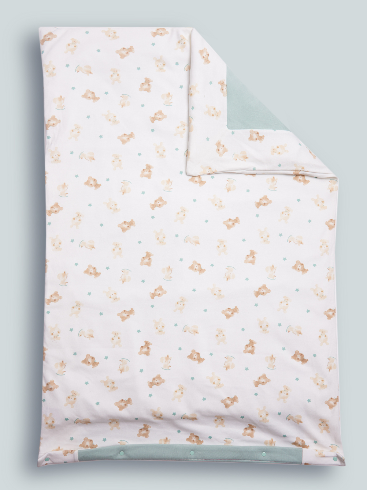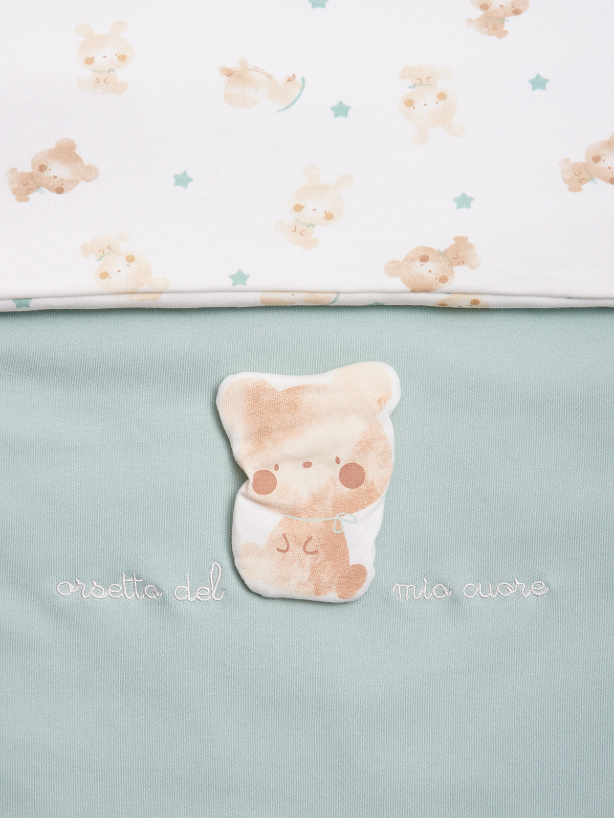 Calda copertina con la quale il tuo piccolo/a si sentirà protetto durante i suoi riposini. Tessuto caldo cotone fantasia e unito. Elemento decorativo: spiritosa grafica ricamata e orsetto stampato su toppa imbottita riproposto su altri articoli newborn neonato. Particolarità dell’ articolo: sacco imbottito estraibile. Dimensioni dell’articolo: 82 x 60cm. Questo accessorio fa parte del corredino composto da tutti gli articoli indispensabili per il tuo neonato.
