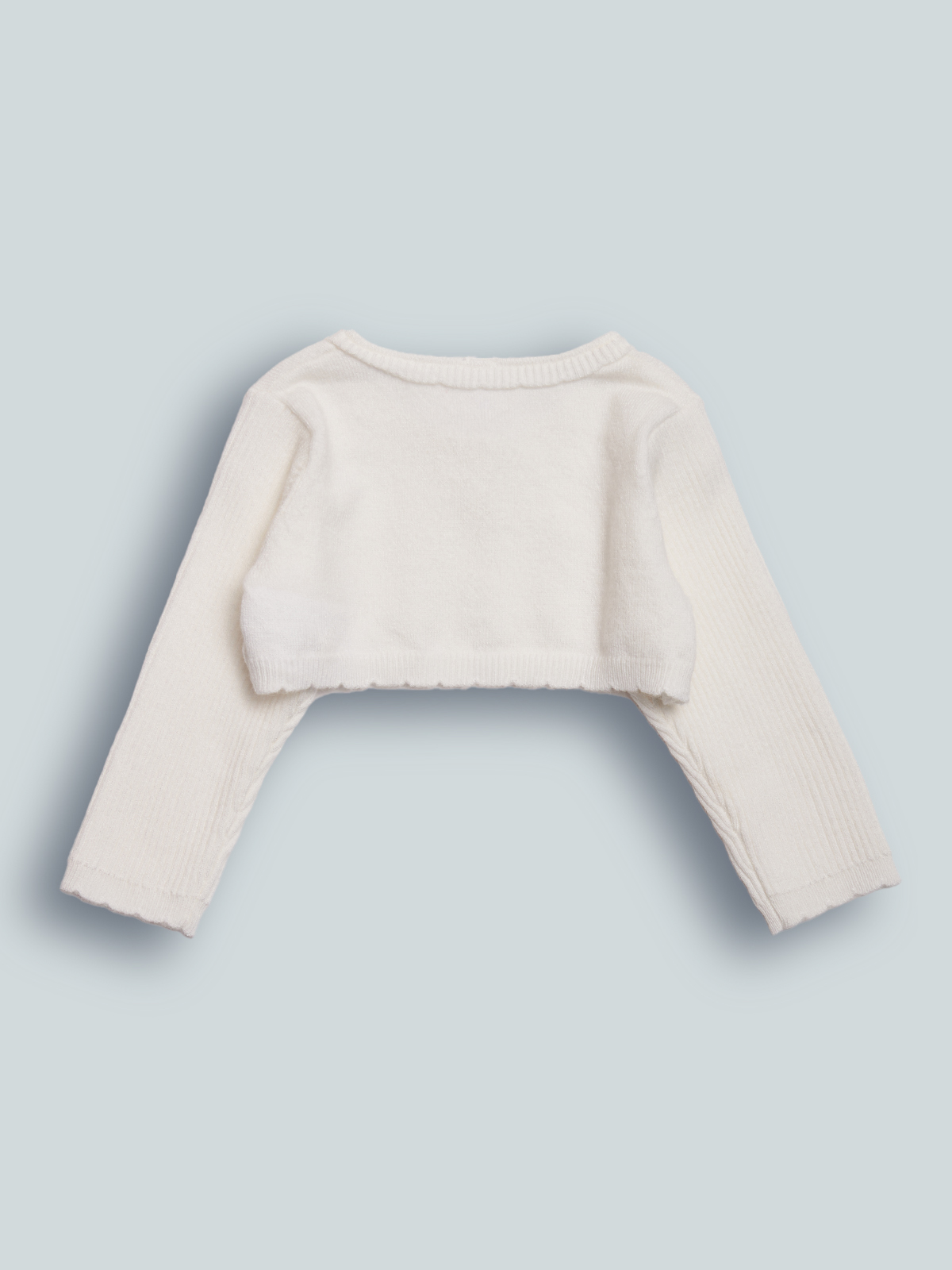 Coprispalle corto in Morbido Misto cotone, Manica lunga. Pratico da indossare grazie all’apertura frontale con bottoncino. Perfetto da abbinare ai vestiti cerimoniosi della collezione, per un outfit completo e all’insegna della Moda!