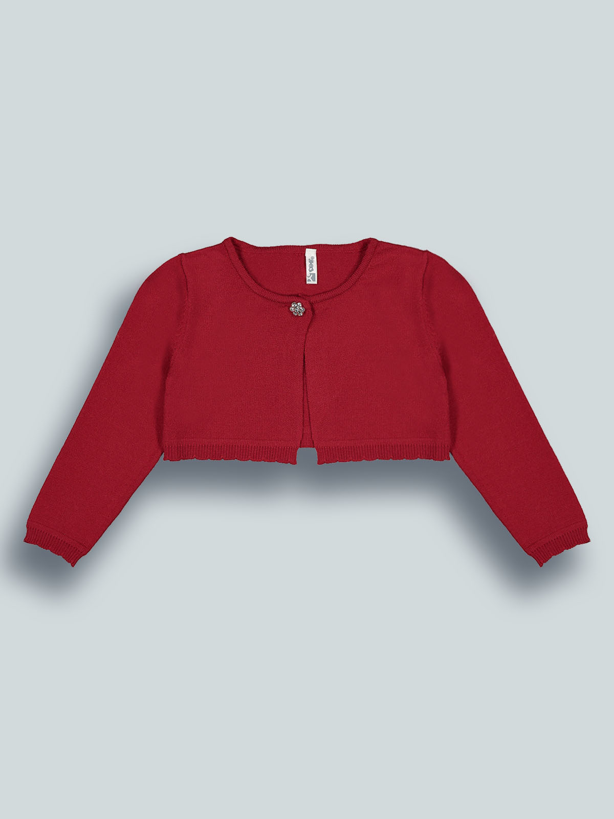 Coprispalle in maglia di morbido cotone, manica lunga. Pratico da indossare grazie all’apertura frontale con bottoncino a gioiello. Il capo ideale da abbinare agli outfit natalizi della tua bambina.
