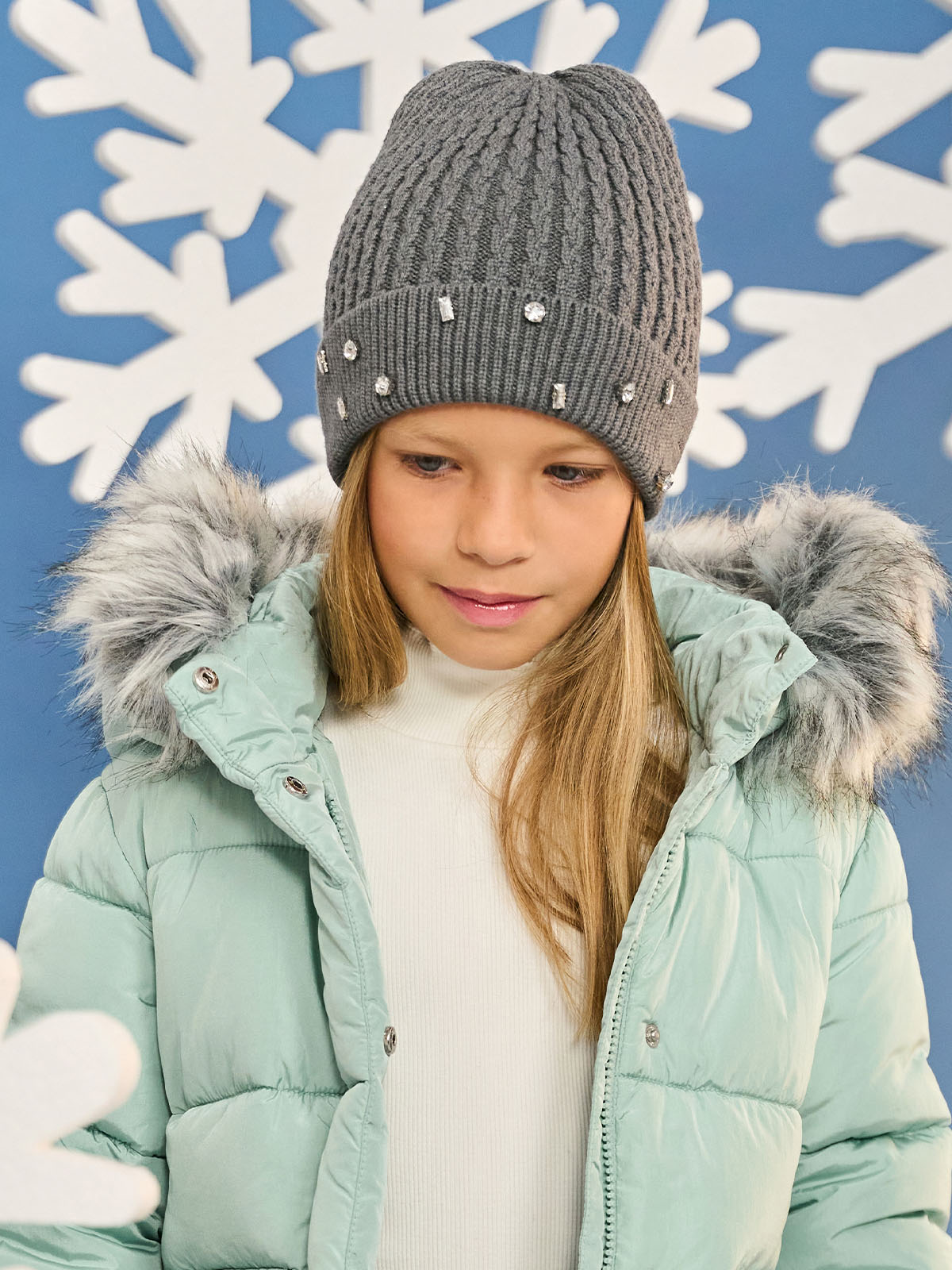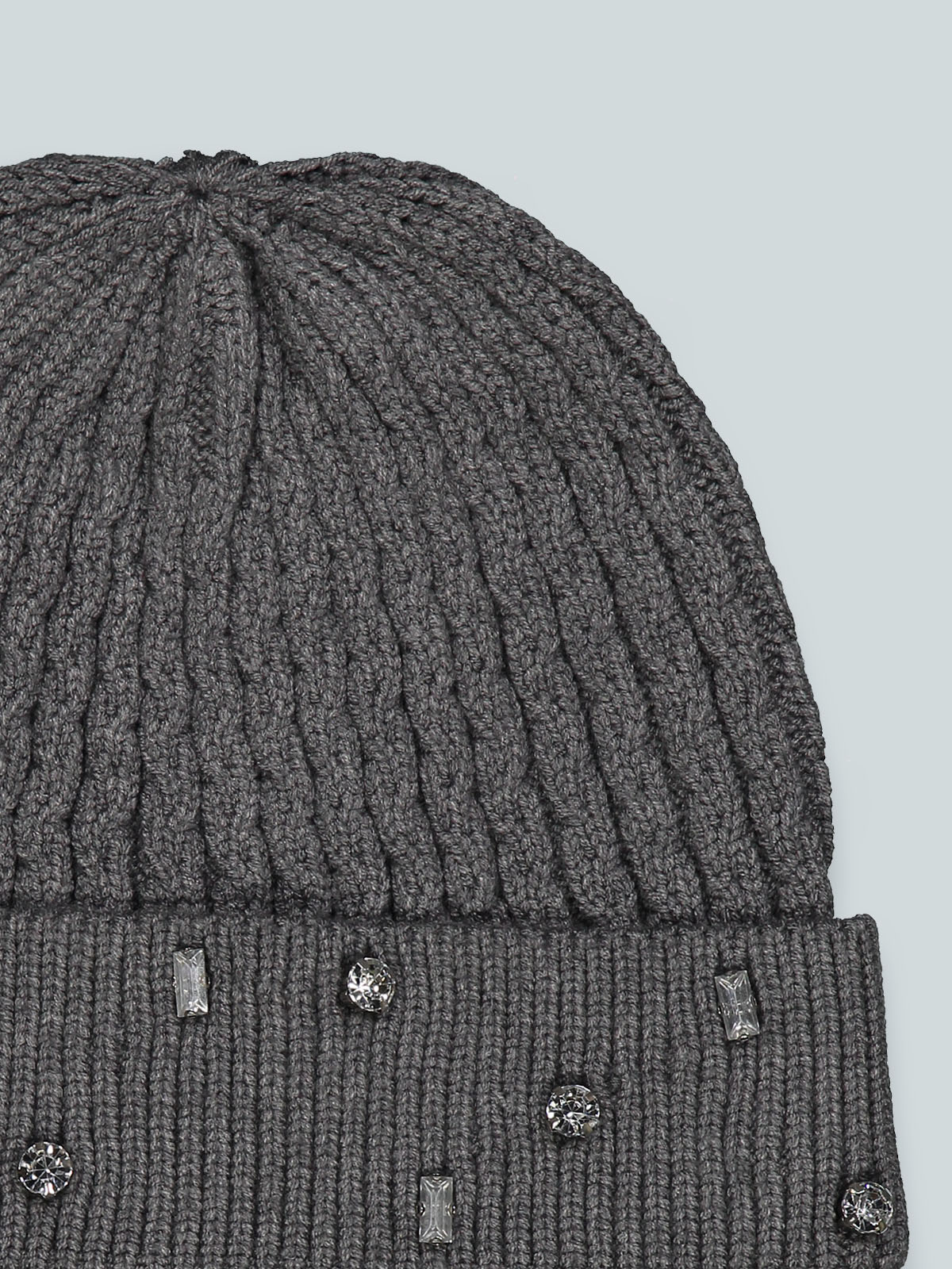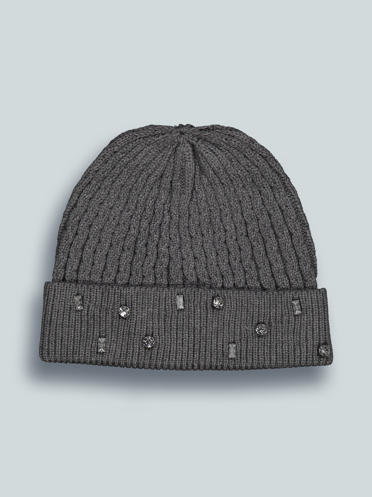 Cuffia in morbida maglia melange, cabochons applicati sul bordo davanti. E’ perfettamente abbinabile alla sua sciarpa realizzato con lo stesso filato. Ideale per le giornate più fredde.