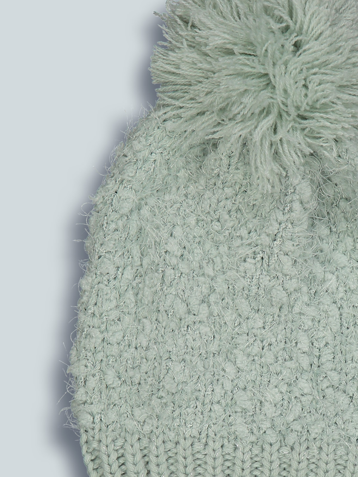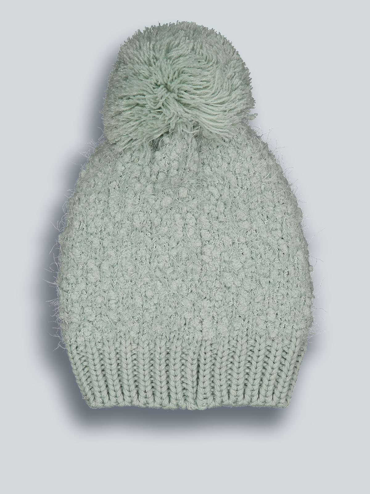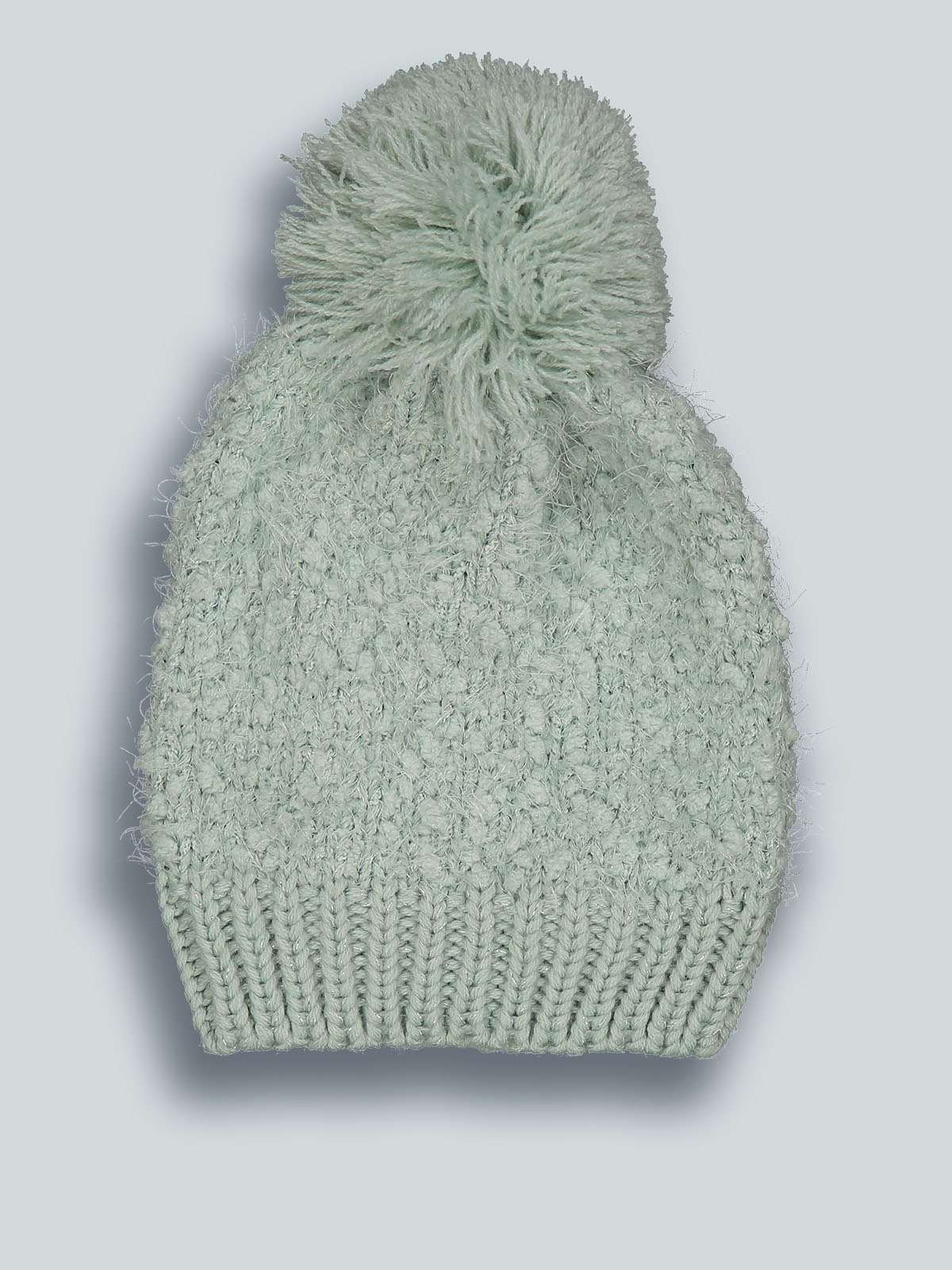Cuffia in maglia di morbido misto cotone con lurex e pompon. E’ perfettamente abbinabile al suo collo, realizzato con lo stesso filato. Un must have per la stagione invernale.