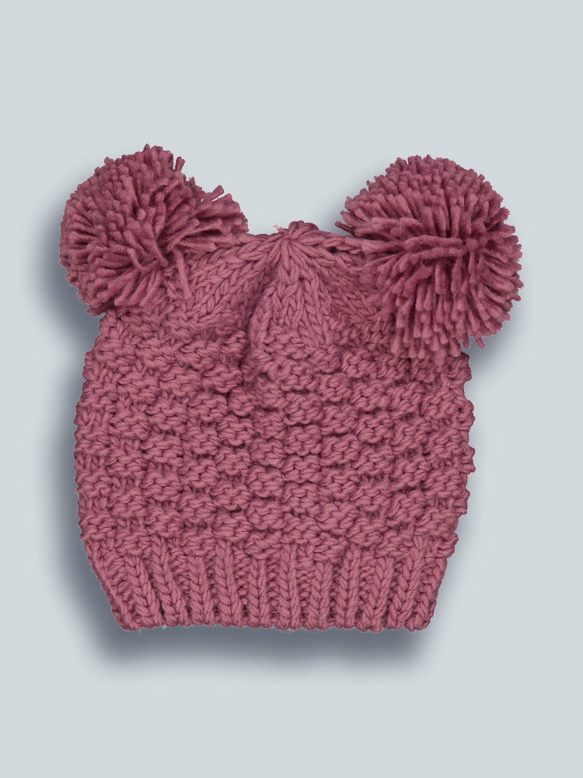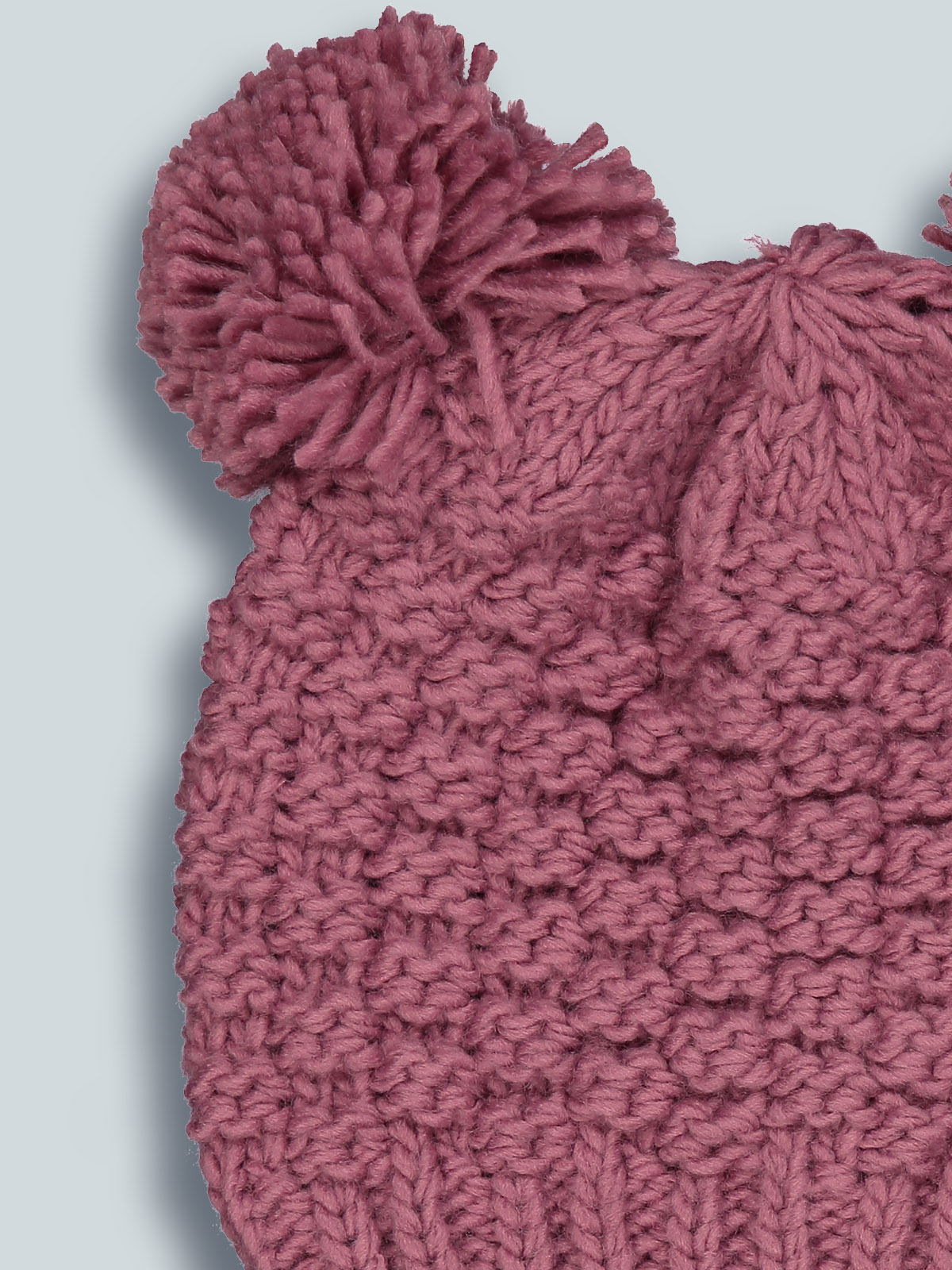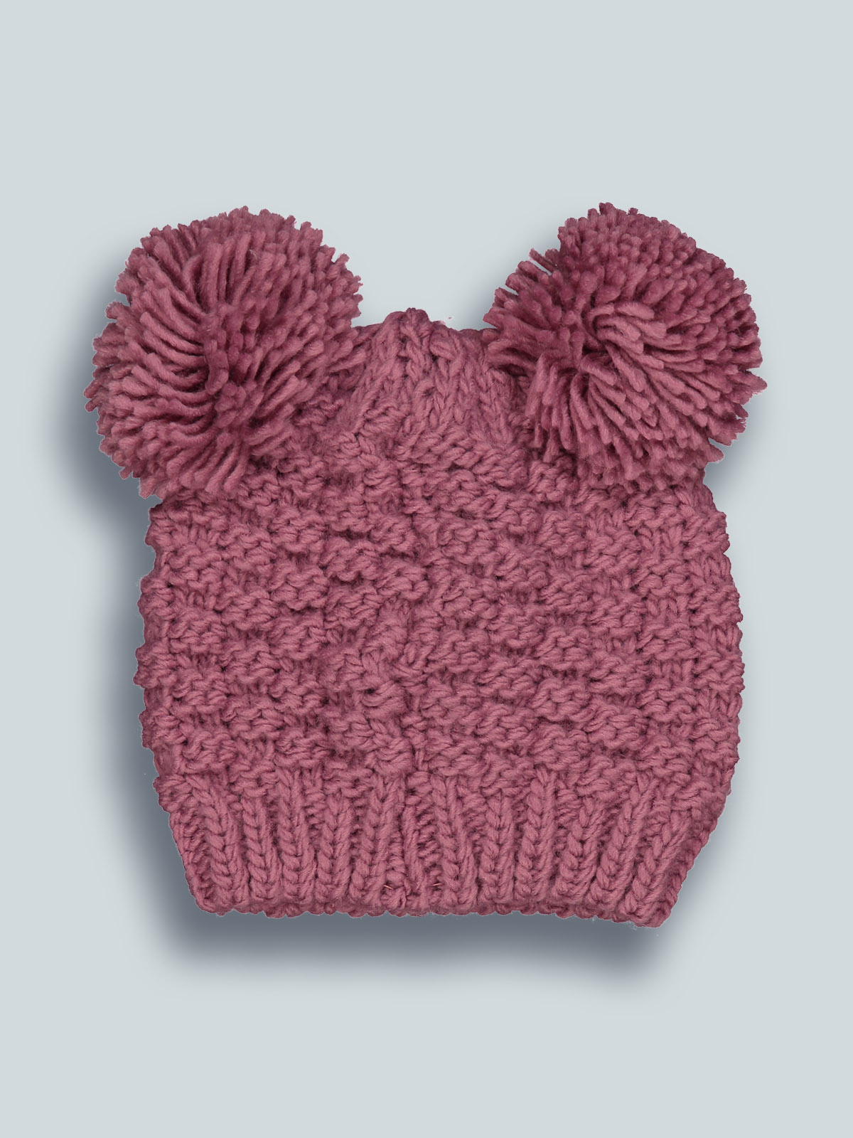Cuffia in maglia di morbido cotone con pompon. E’ perfettamente abbinabile al suo collo, realizzato con lo stesso filato. La cuffia ideale per tenere al caldo la vostra bambina nelle giornate invernali.
