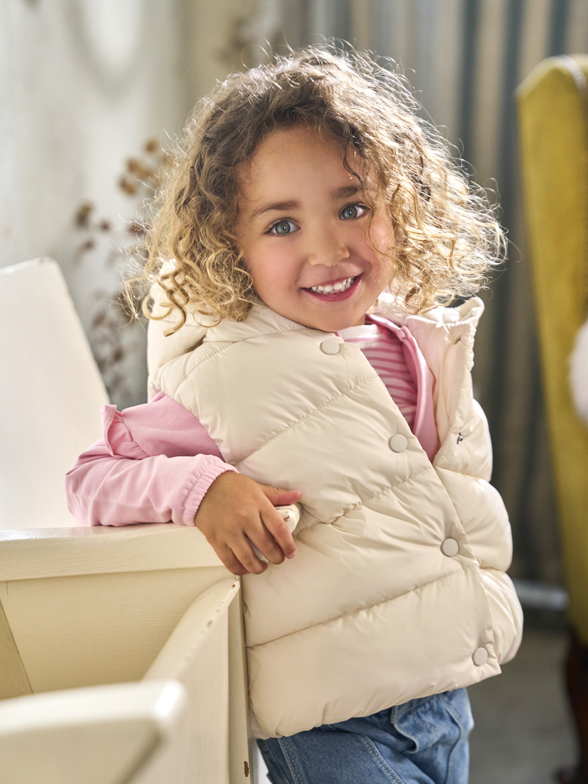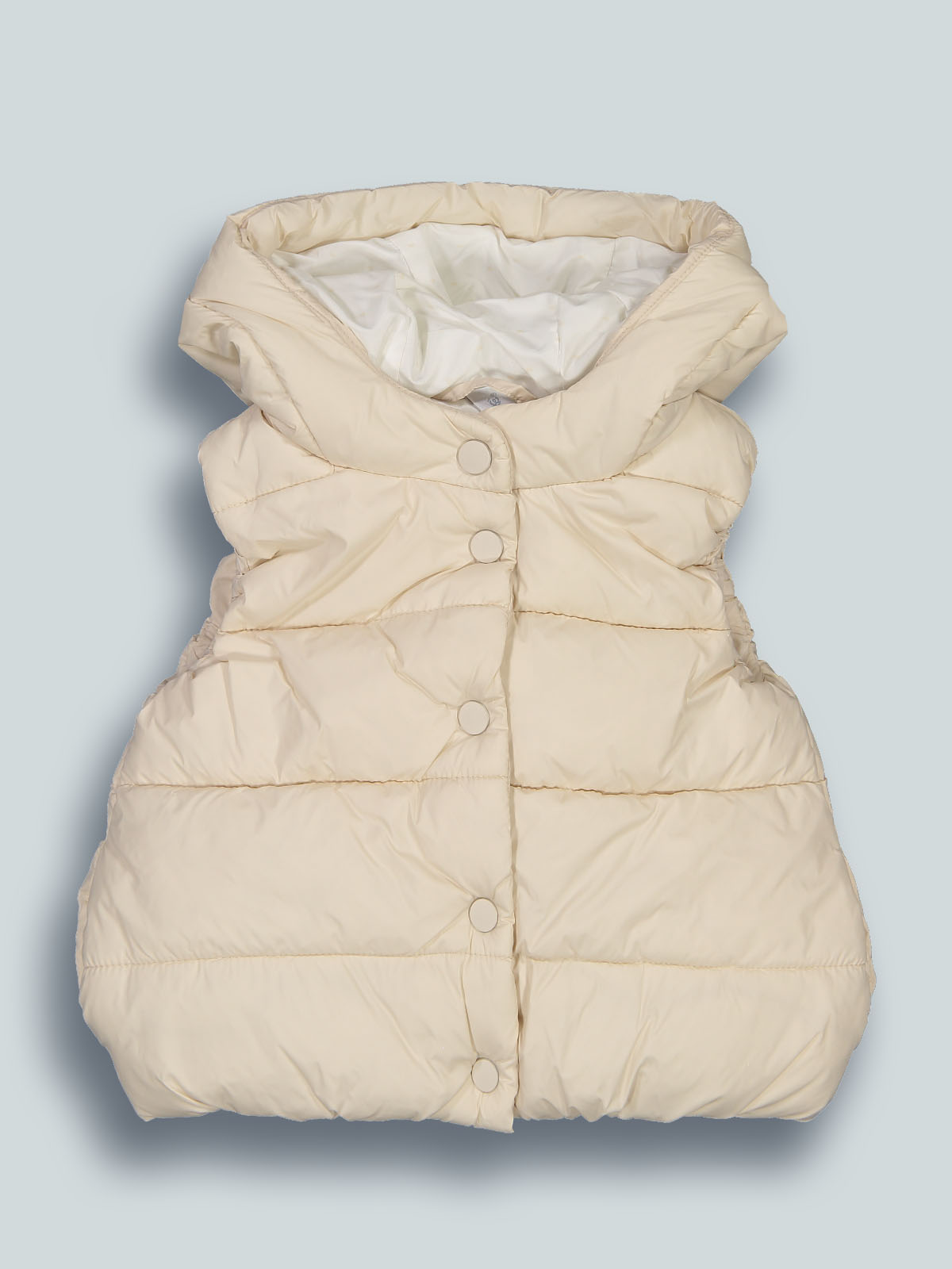 Gilet trapuntato con morbida e calda ovatta in nylon lucido, con cappuccio. Pratico da indossare grazie all’apertura frontale con bottoni. Le orecchie sul cappuccio donano al capo un aspetto estremamente femminile e alla moda. Un capo glamour e ideale per i primi freddi da sovrapporre a una felpa.