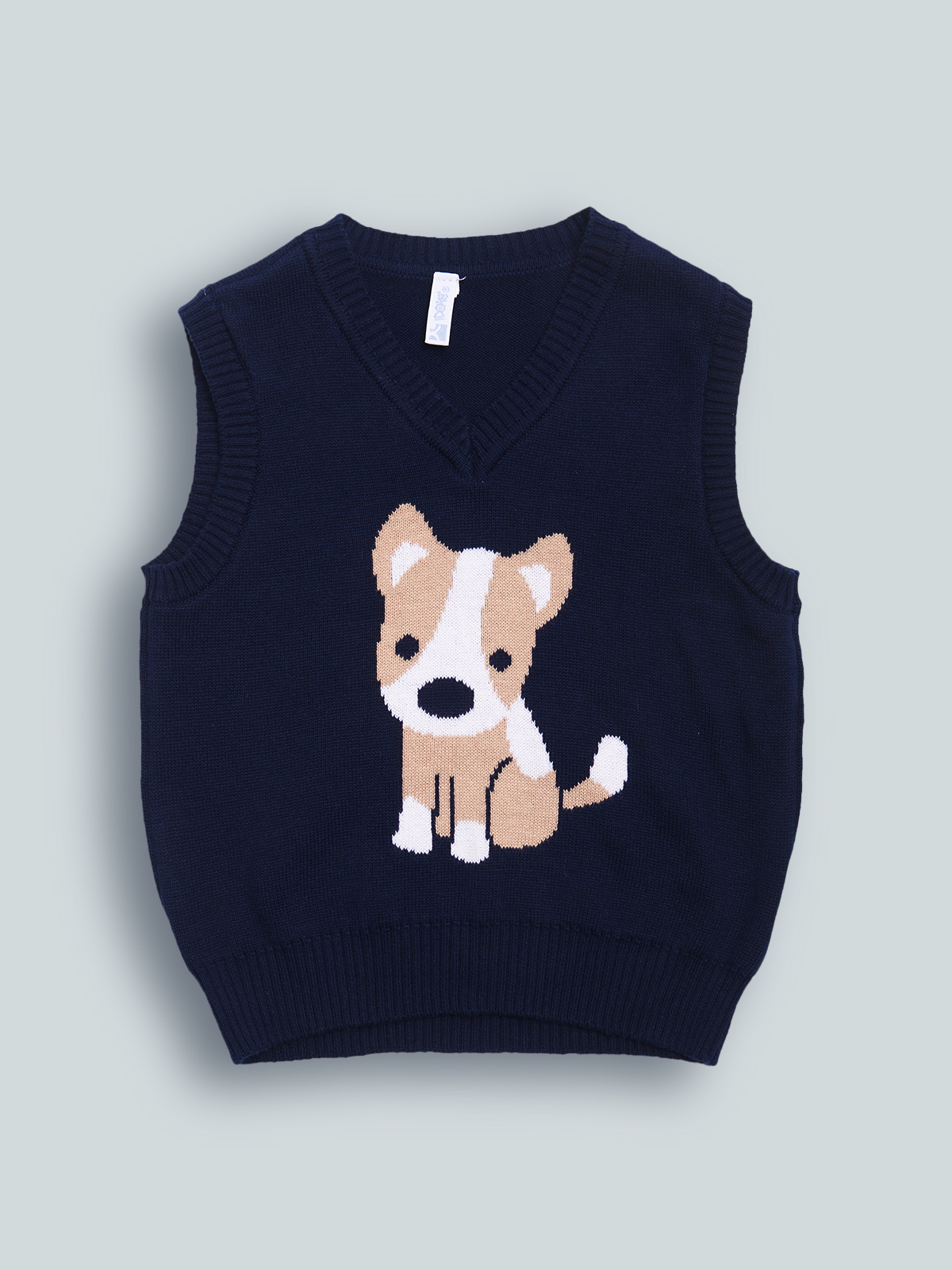 Gilet in Morbido e caldo tricot con scollo a punta, cagnolino in lavorazione jaquard sul davanti. Perfetto in abbinamento ad una camicia, per un look elegante in stile “dandy”.