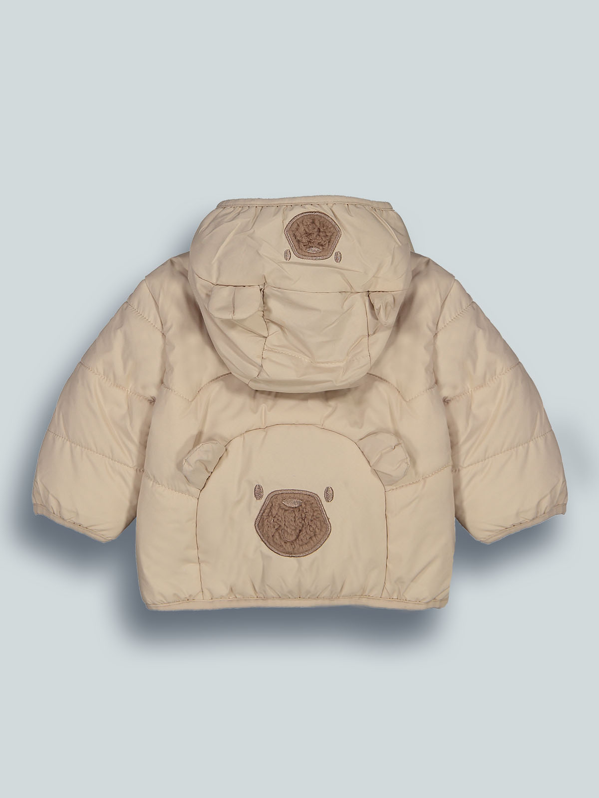 Giubbino nylon imbottito con cappuccio, foderato in morbido pile, interno cappuccio in soffice bouclette che rende il capo molto caldo e confortevole. Comoda apertura con zip. Il capo presenta musetti ricamati e orecchie 3D sul cappuccio e sul dietro. Ideale per vestire con stile anche quando le temperature si fanno più rigide.