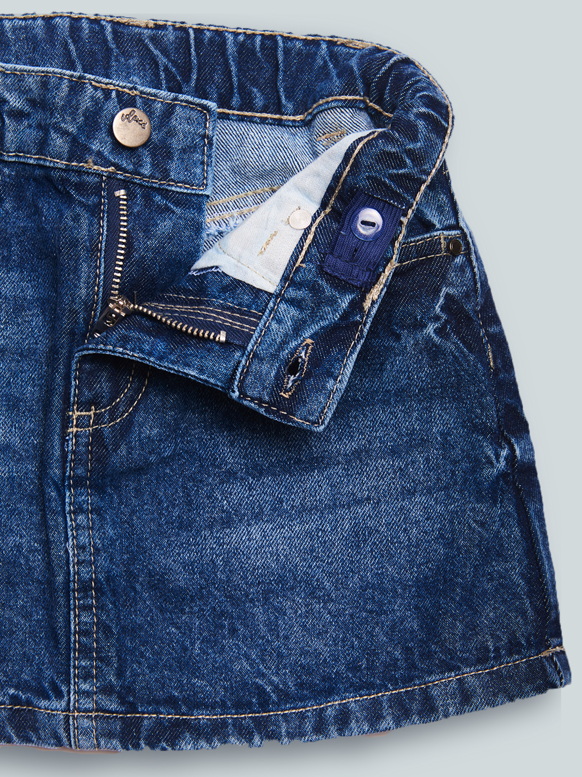 Gonna cinque tasche in denim. Vita regolabile e apertura con zip e bottone. Un capo essenziale per essere sempre al passo con la Moda.