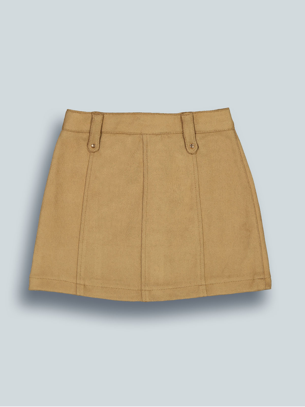 Gonna in tessuto effetto scamosciato, apertura anteriore con bottoni automatici. Vita regolabile per maggiore comodità di indosso. Un capo super trendy.