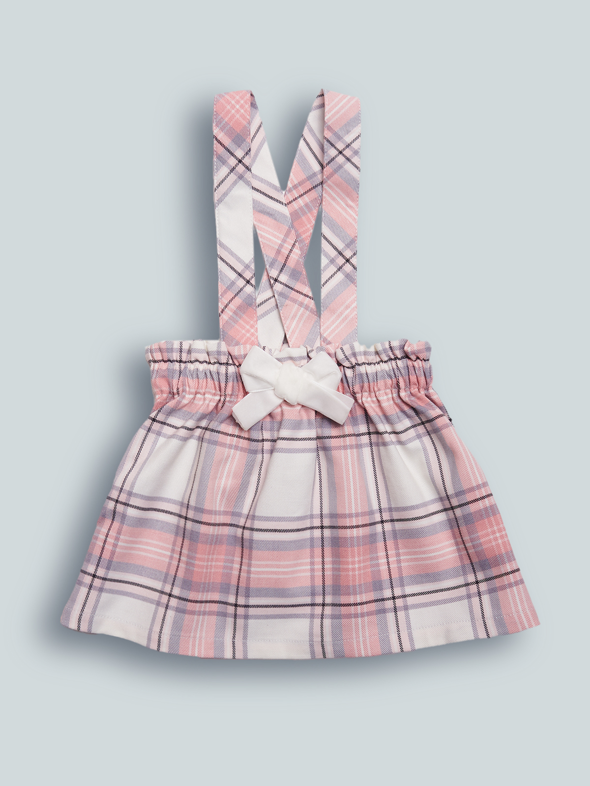 Gonna in Morbida flanella fantasia scozzese. Confortevoli e pratiche bretelle staccabili e regolabili, adatte per ogni bambina. Vita elasticata per Maggiore comodità. Un capo con dettagli eleganti, ideale da abbinare ad una tshirt per un total look alla Moda.