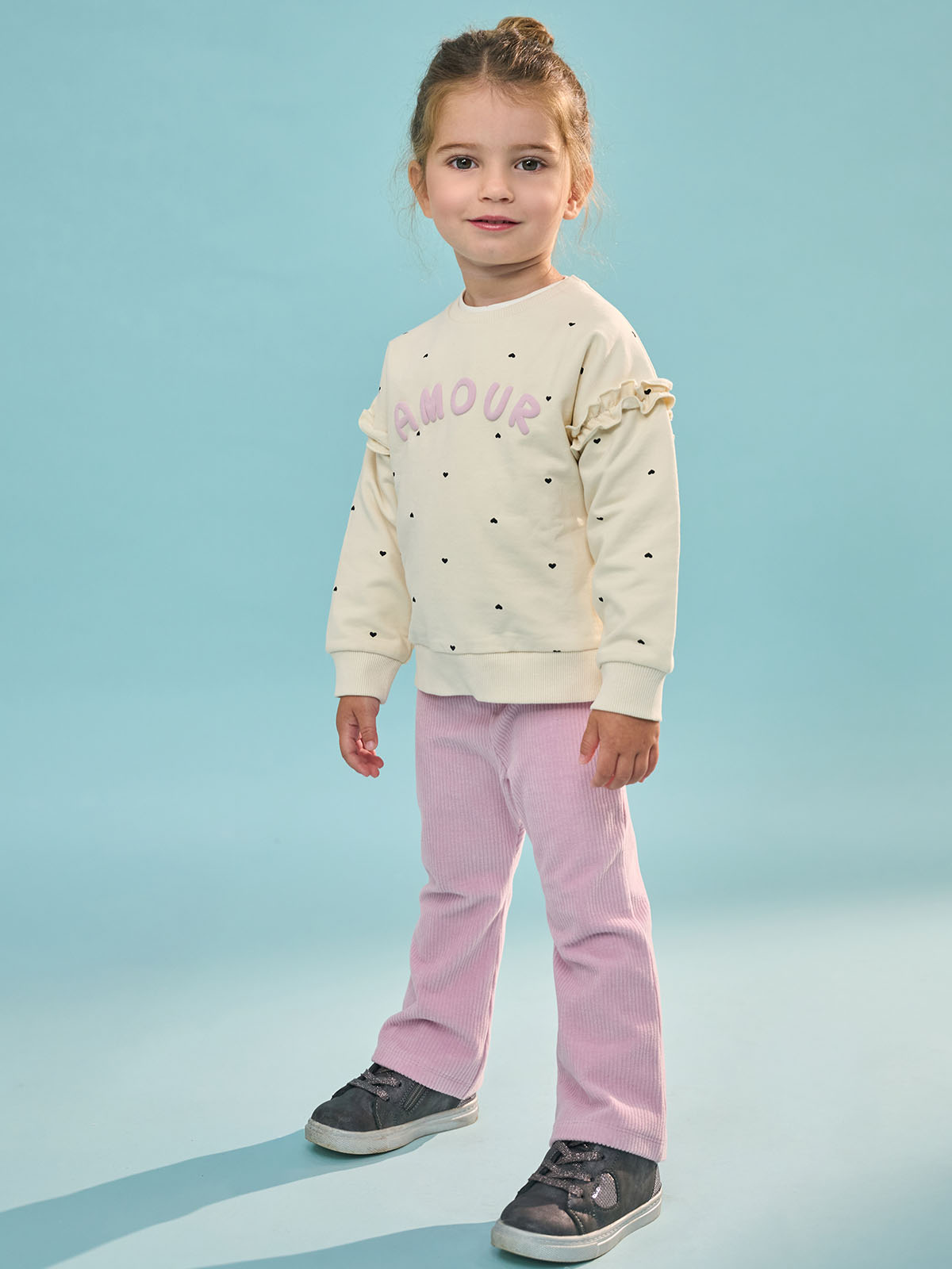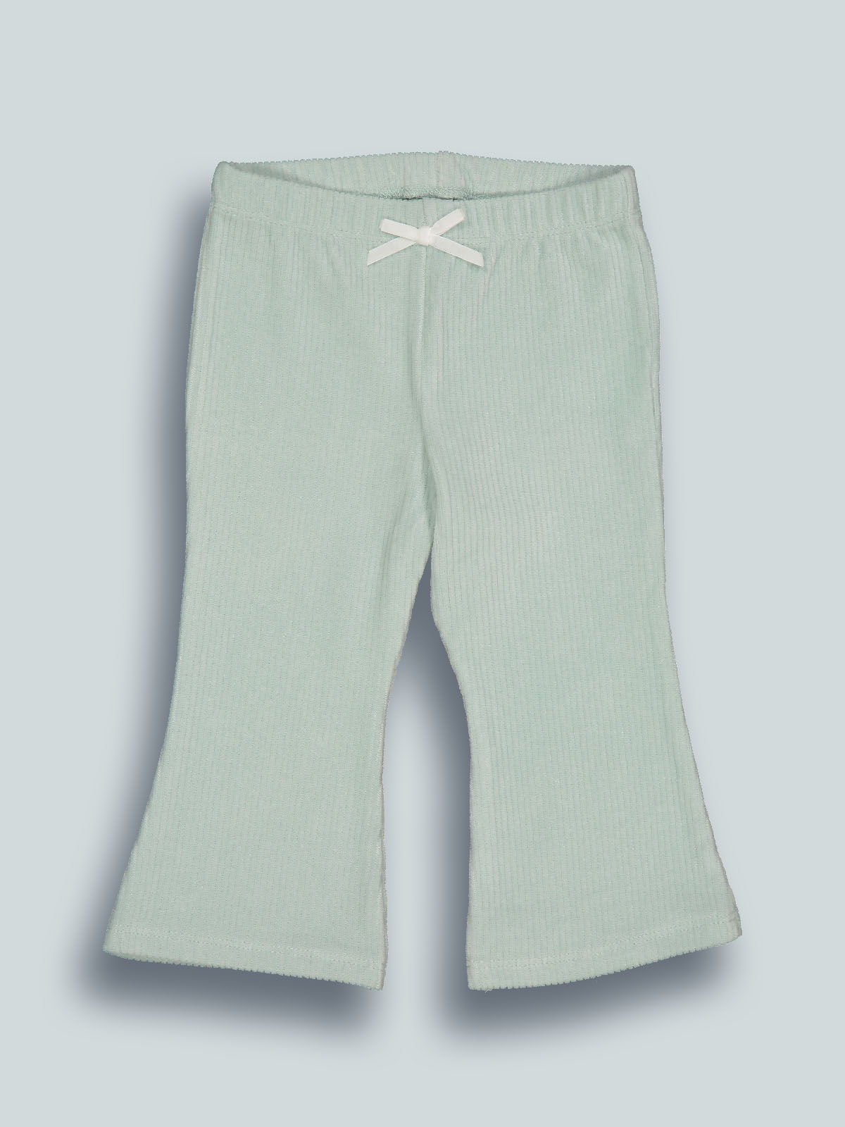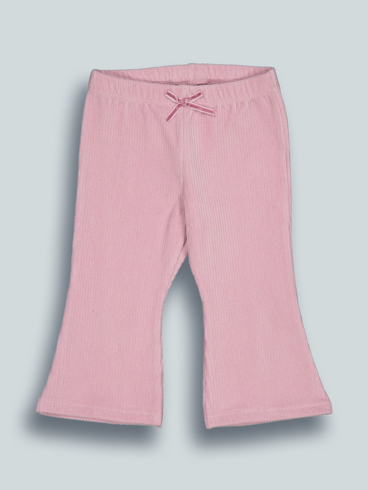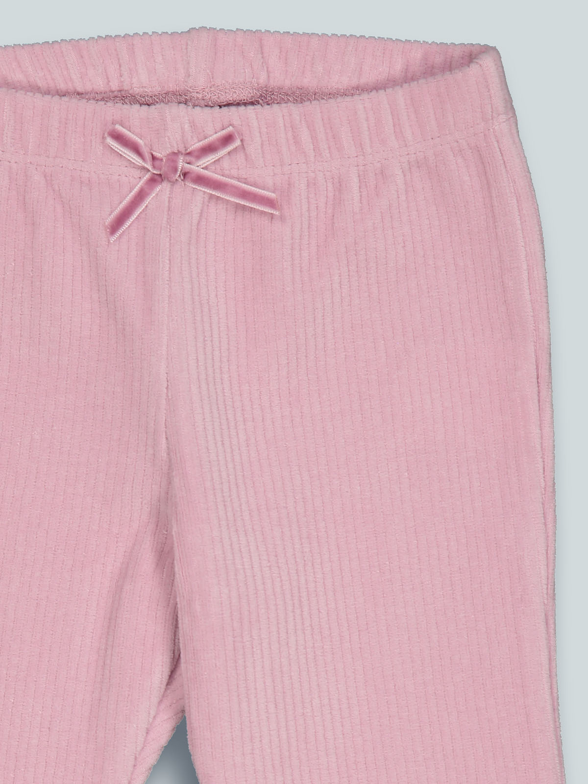 Leggings modello a zampetta in morbida e calda ciniglia a coste con vita elasticata per maggiore comodità. Fiocco in velour per ancora più femminilità. Un capo estremamente pratico e di facile abbinamento.