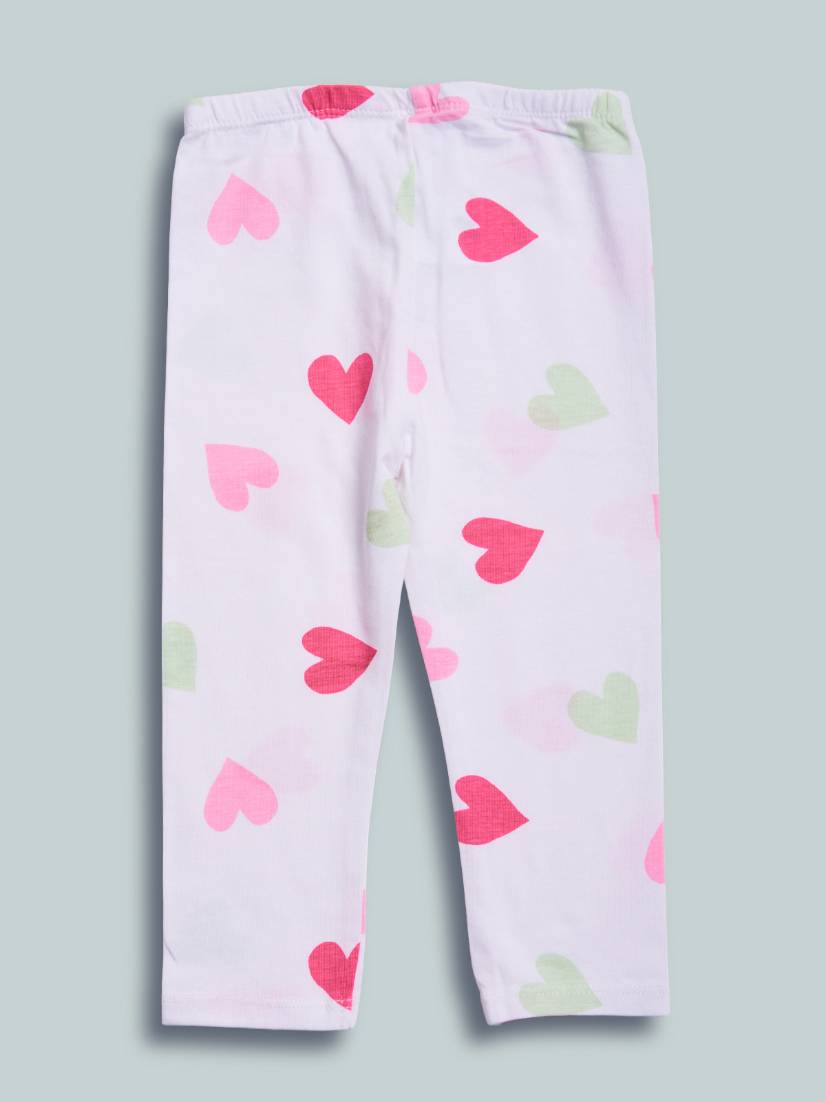 Leggings in cotone elasticizzato che unisce comfort e libertà di movimento, fantasia cuori. Vita elasticata per maggiore comodità. Ideali da indossare tutti i giorni e di facile abbinamento.
