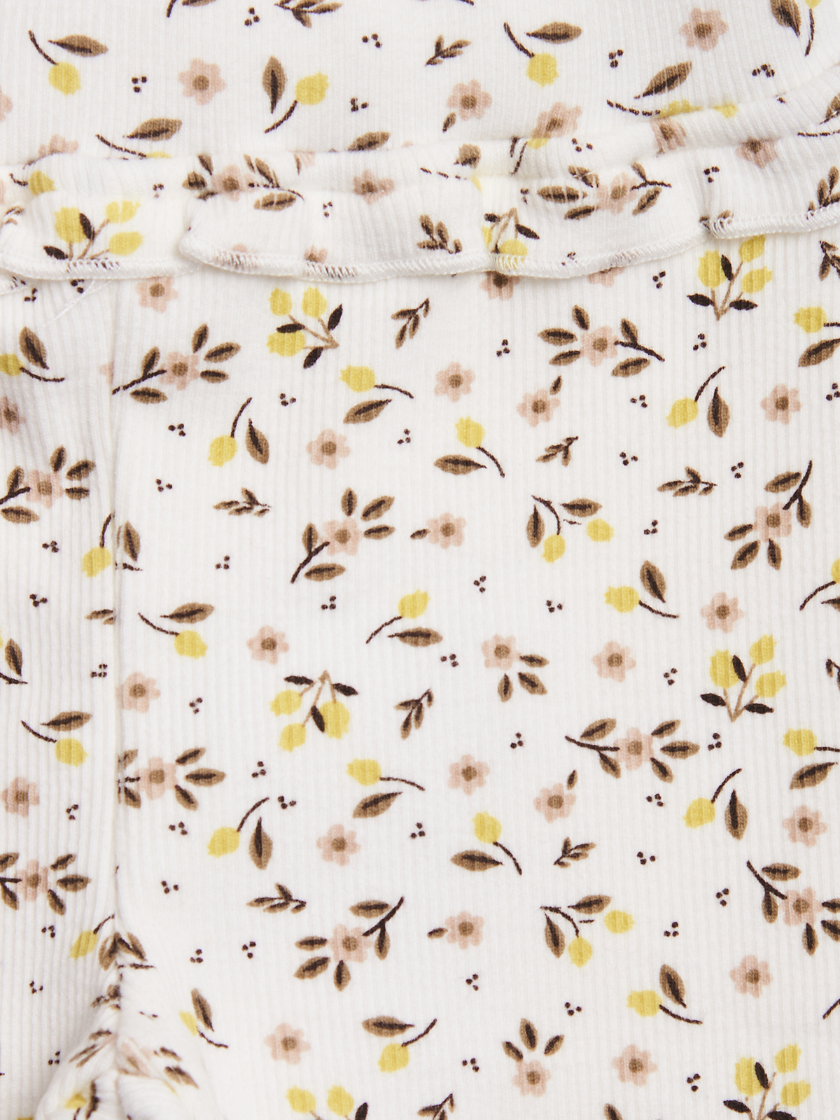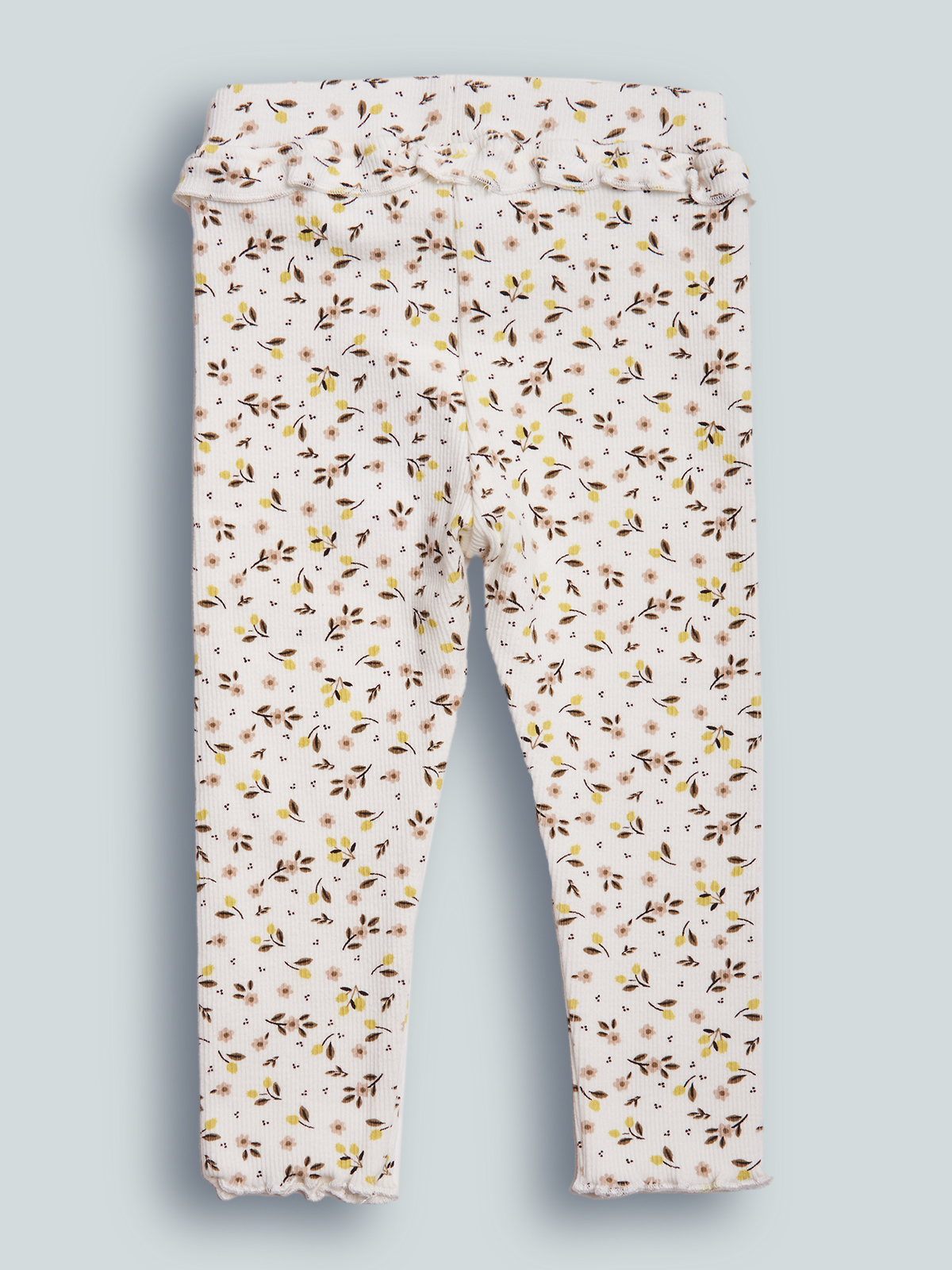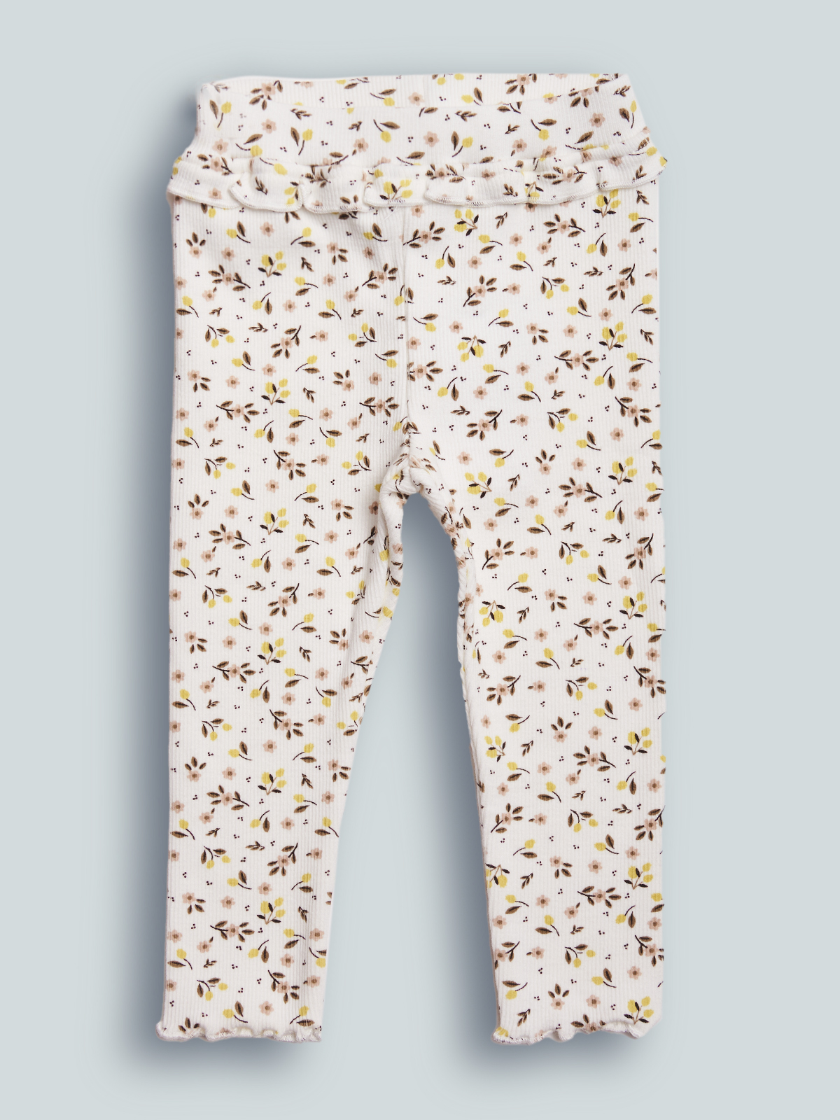 Leggings in morbida e calda costina con vita elasticata per maggiore comodità, fantasia fiori. Balza per ancora più femminilità. Ideali da indossare tutti i giorni.