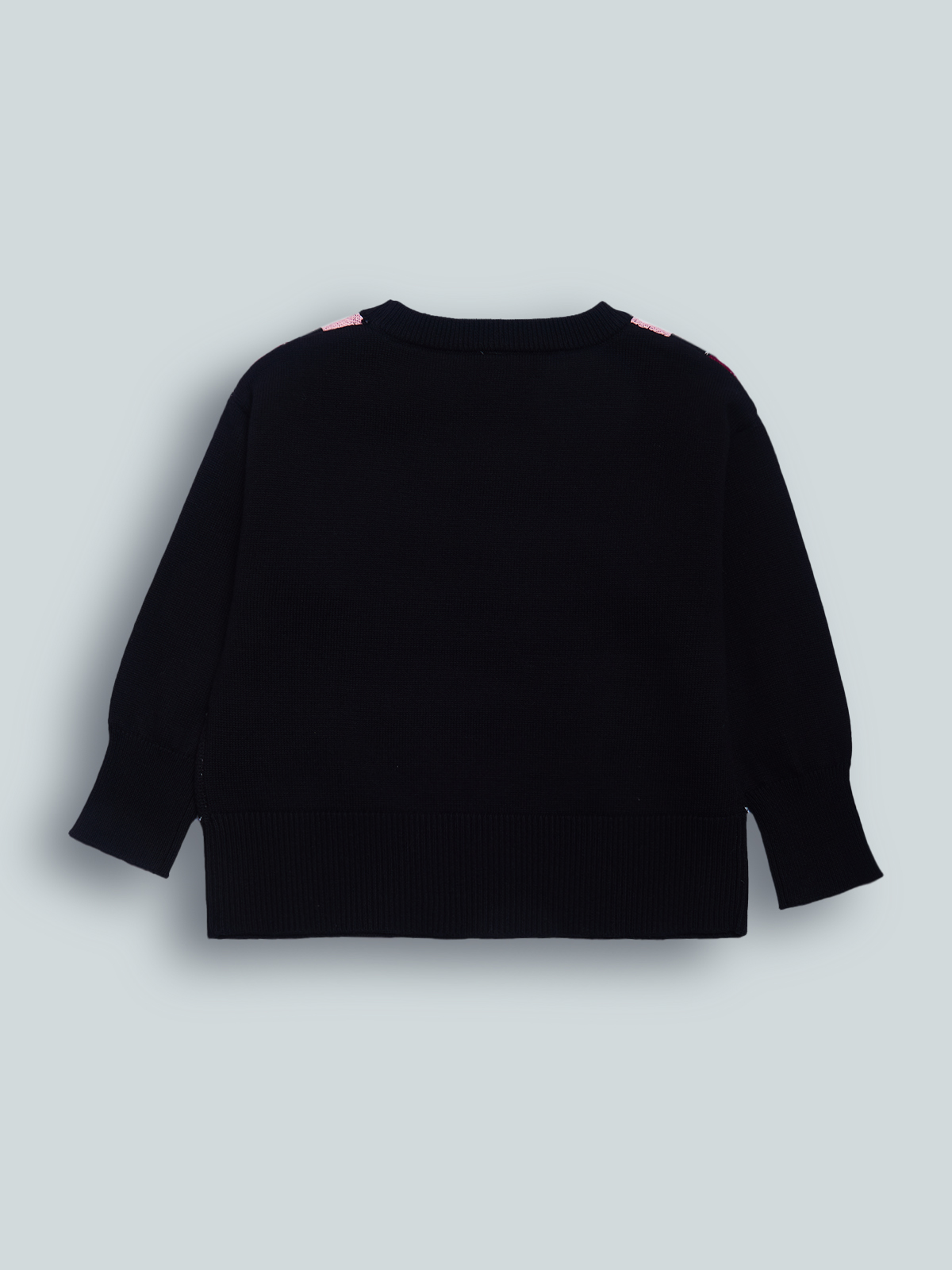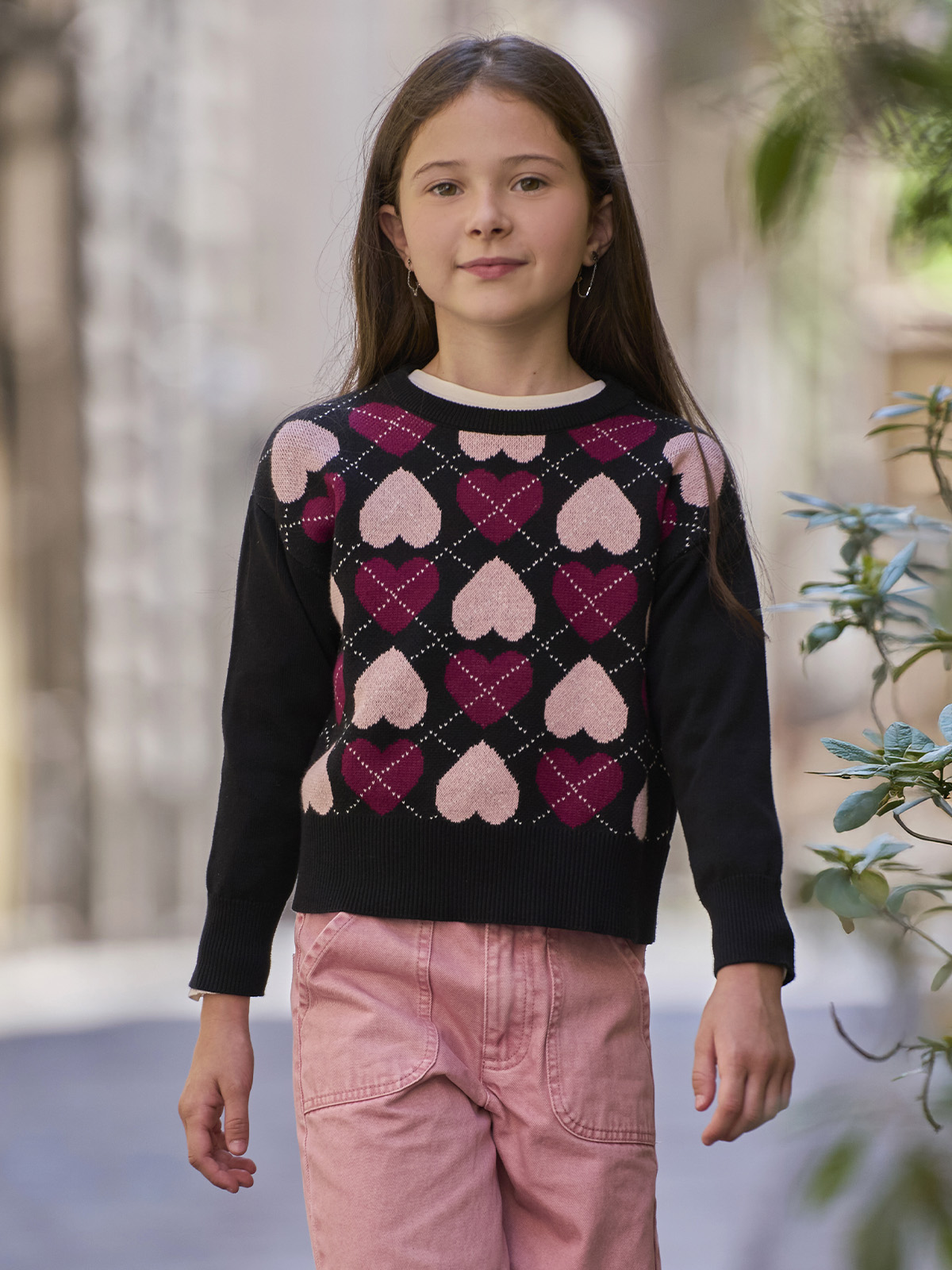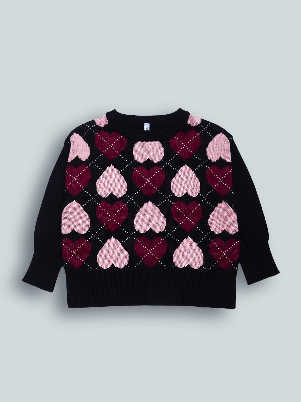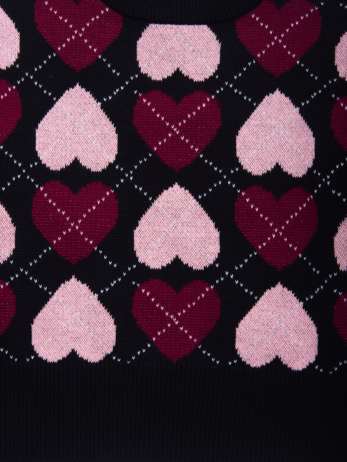 Maglia girocollo in Morbida Maglia jacquard cuori sul davanti con Manica lunga. Un capo versatile dal look glamour.
