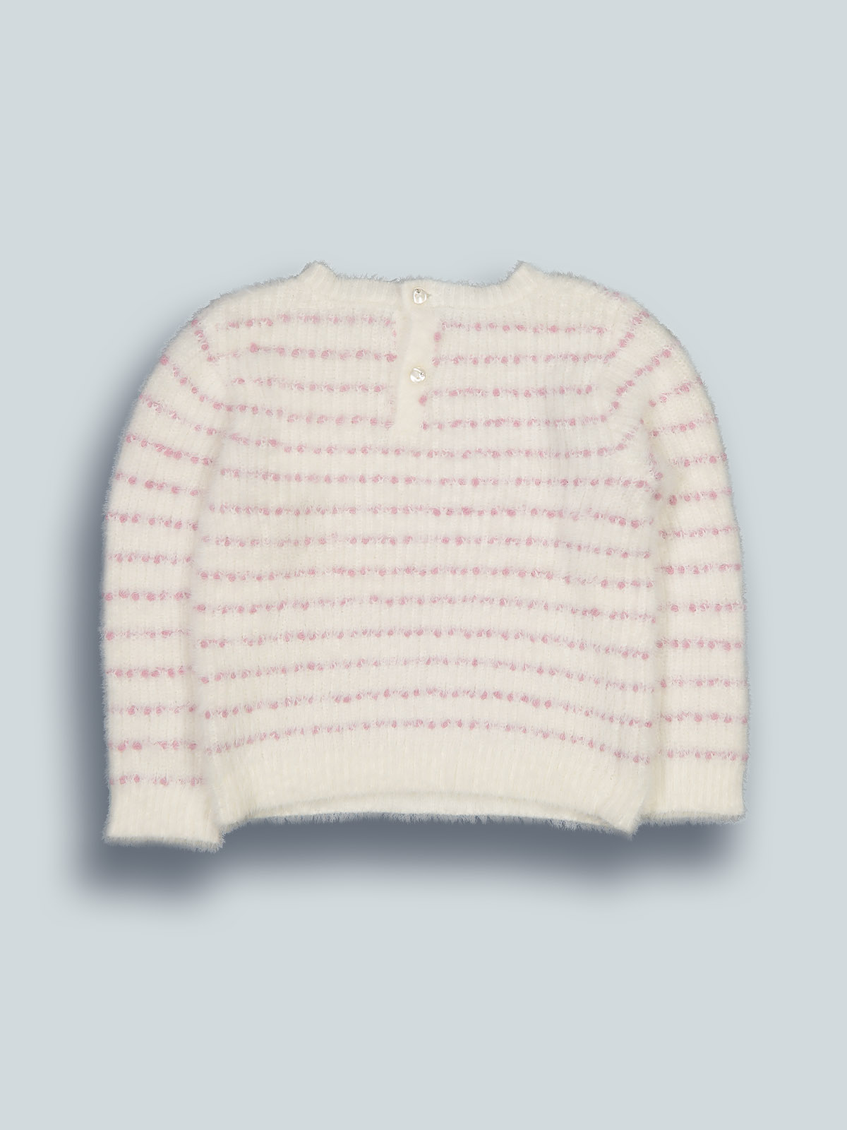 Maglia girocollo in maglia di morbido misto cotone con dettagli colorati. Pratico da indossare grazie all’apertura sul dietro con bottoncini. Un capo caldo e ideale per affrontale l’inverno con stile.