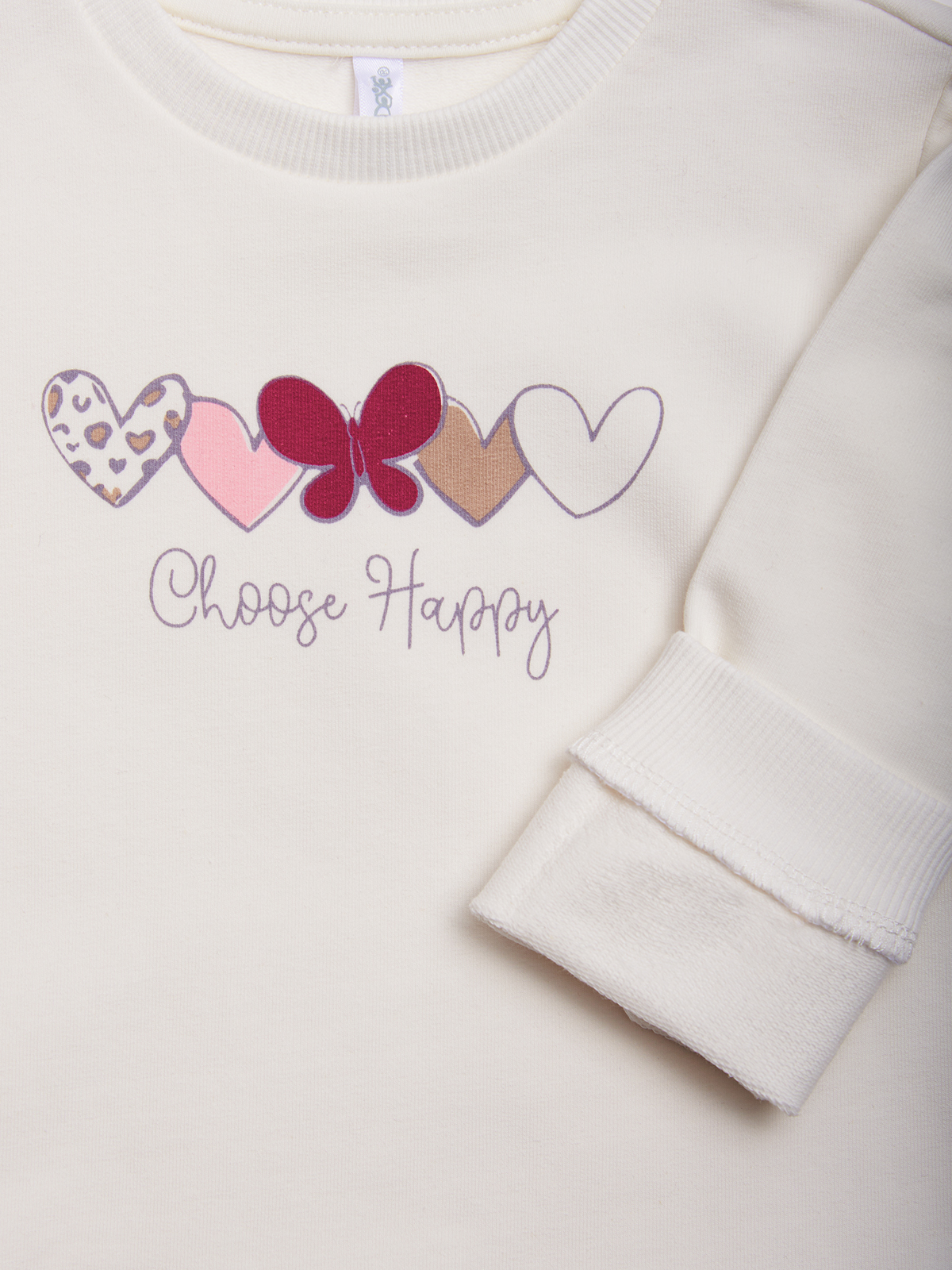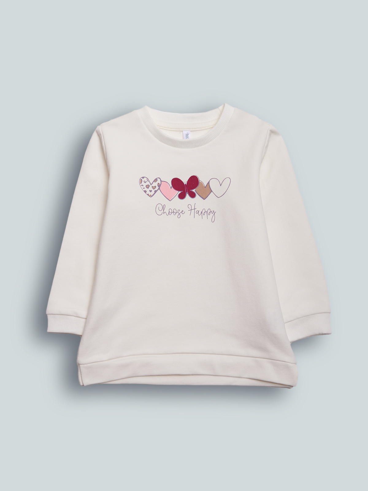 Maglia girocollo in Morbida felpa leggera elasticizzata Manica lunga con romantica stampa cuoricini. Collo e polsi in costina. Un capo di facile abbinamento e Molto pratico per il tempo libero.