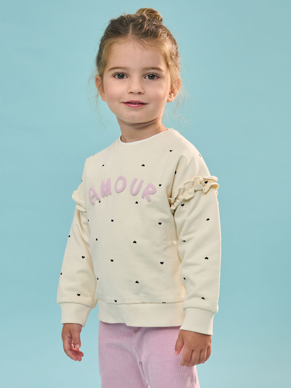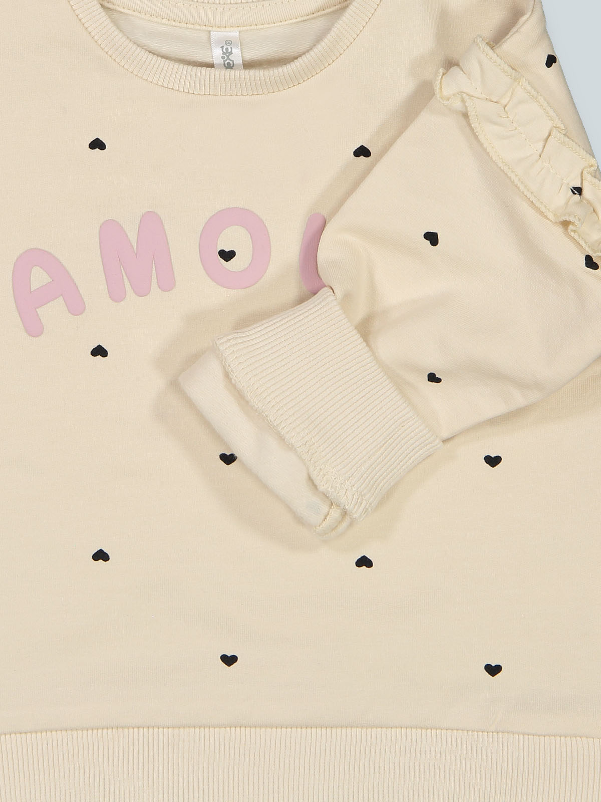 Maglia girocollo in morbida e calda felpa elasticizzata manica lunga. Stampa scritta in tridimensionale sul davanti. Rouches al giromanica Collo, polsi e fondo in costina. L’interno della felpa di questo capo è lavorato in maniera tale che le fibre del tessuto si sollevino, rendendolo più morbido, soffice e caldo sulla pelle. Un capo versatile e di facile abbinamento.