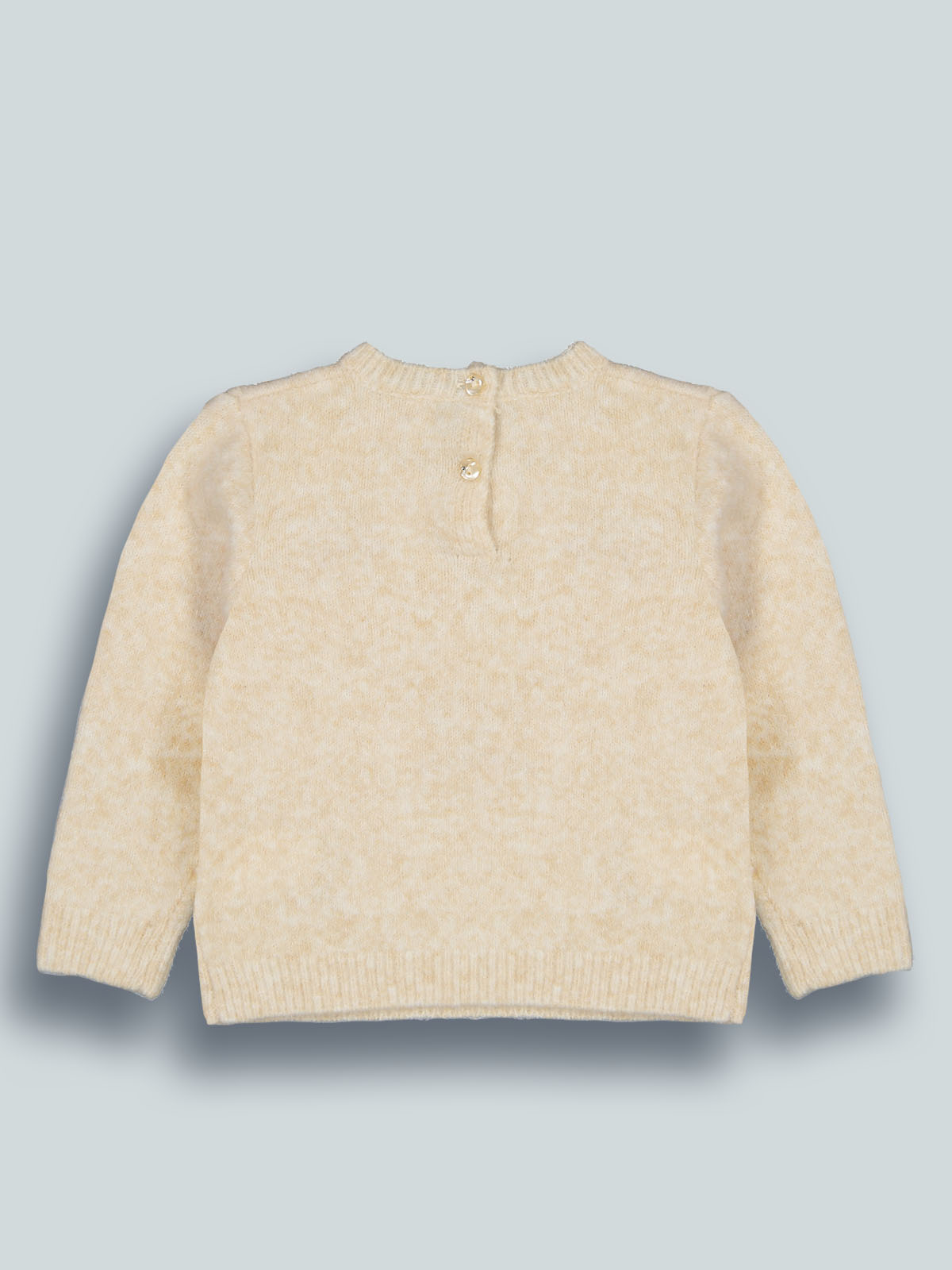 Maglia girocollo in maglia di morbido misto cotone manica lunga. Pratico da indossare grazie all’apertura con bottoncini sul dietro. Simpatici orsetti a ricamo effetto punto spugna. Un capo caldo, ideale per affrontare l’inverno con stile.