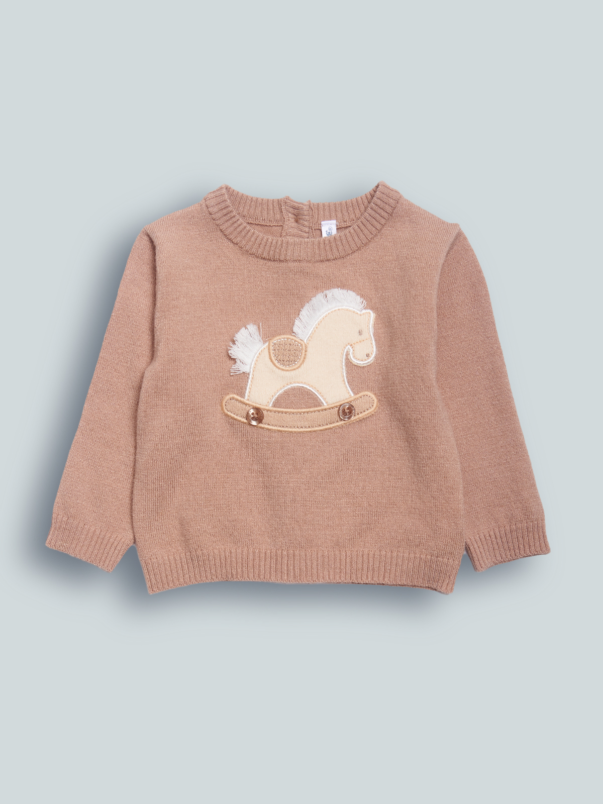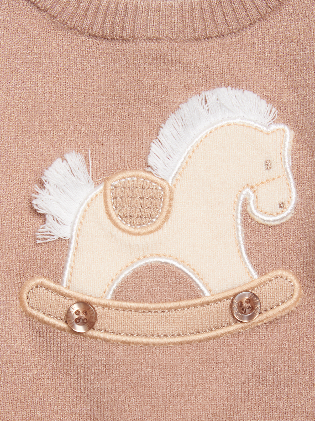 Maglioncino girocollo in Morbida Maglia Misto cotone. Apertura totale sul dietro, ricamo in applicazione. Grazie al suo stile classico, questo capo si abbina bene sia ad un look casual che ad uno più elegante.